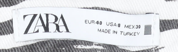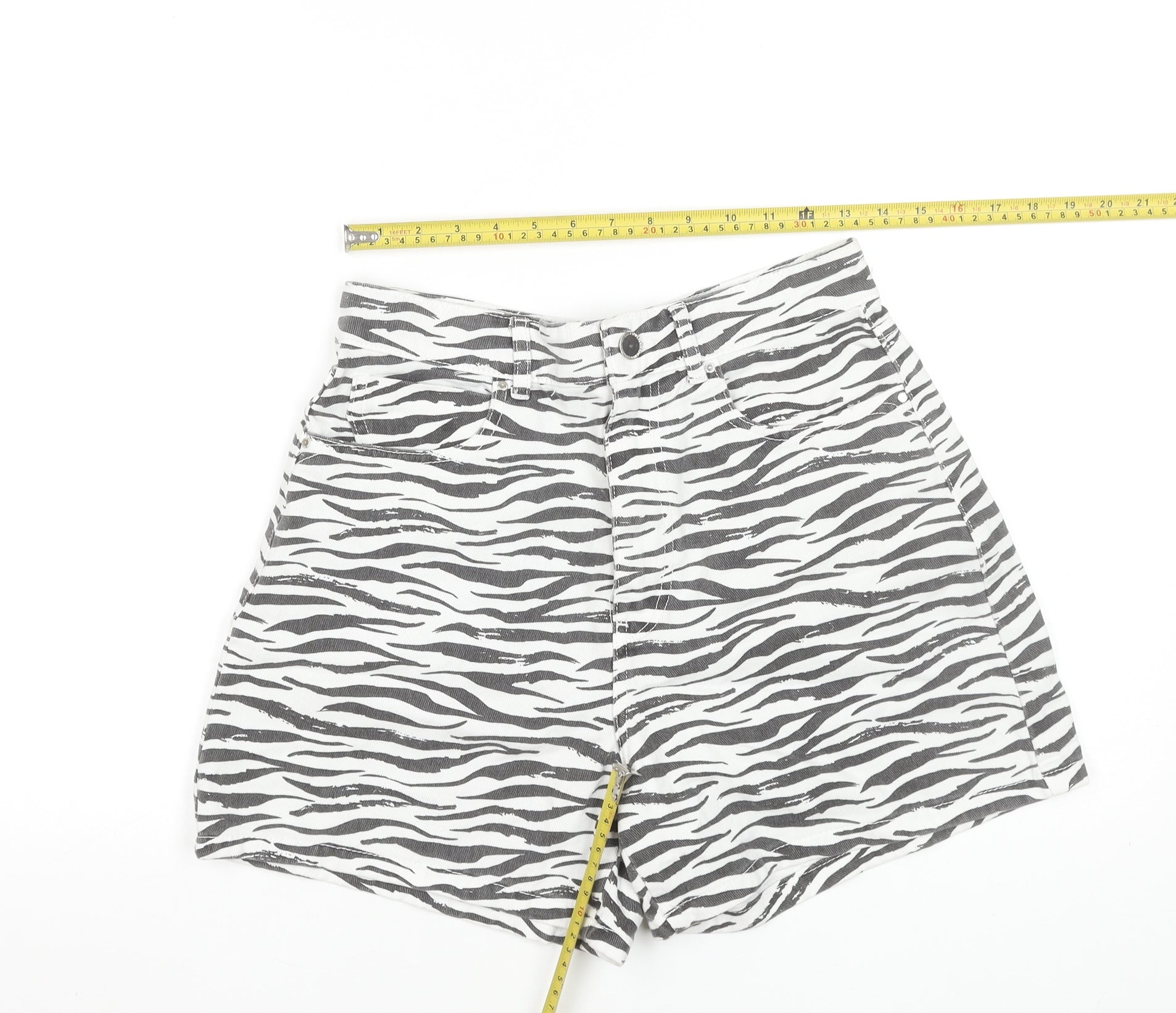 ZARA Women Black Zebra Print High Waist Chino Shorts Size 12