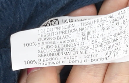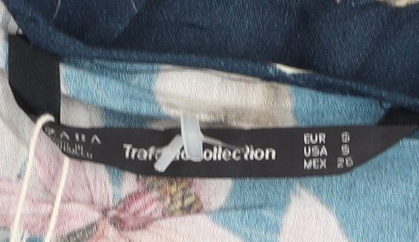 Zara Women Blue Floral Viscose Bodysuit Size 6 Long Sleeve V-Neck