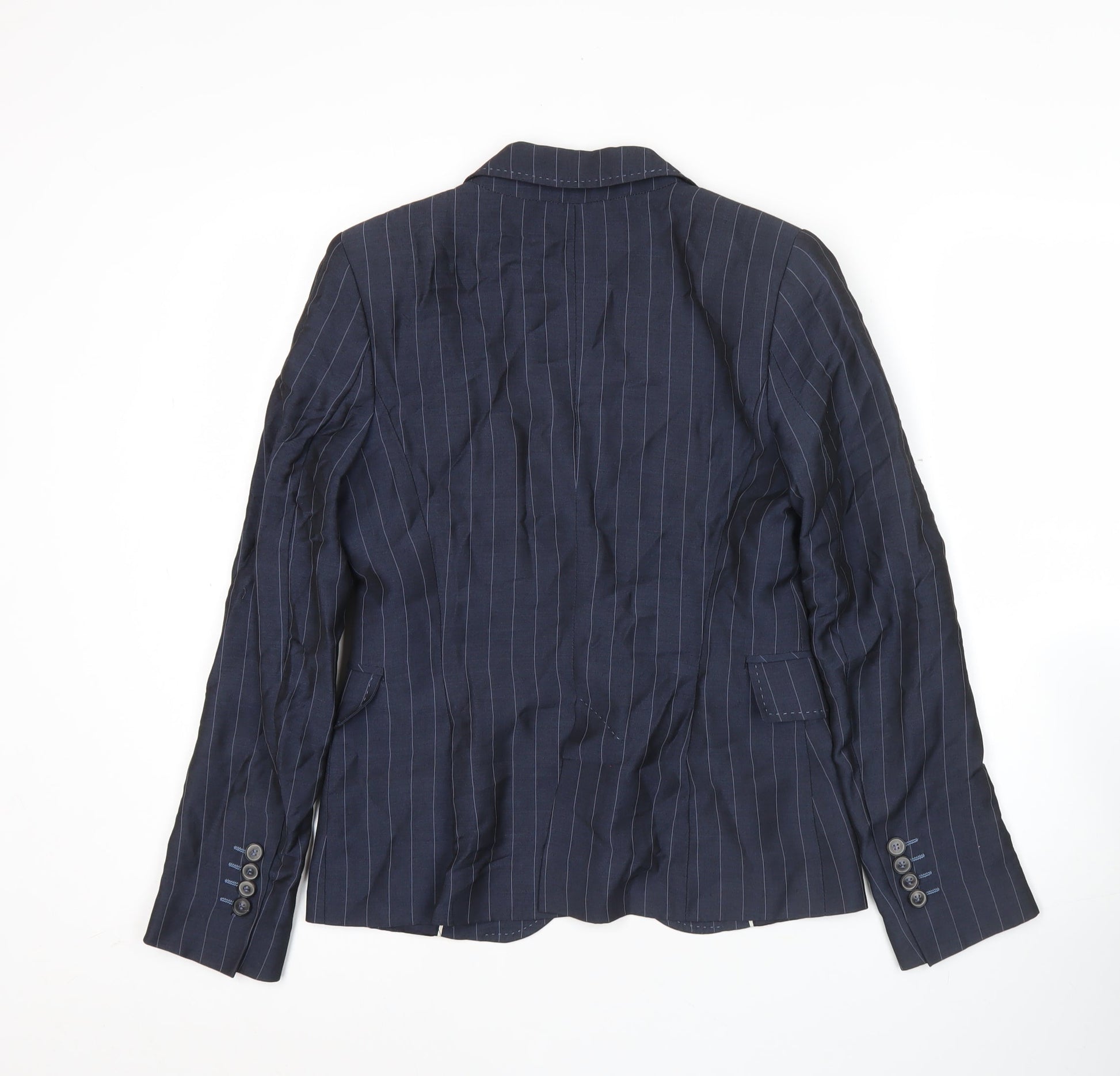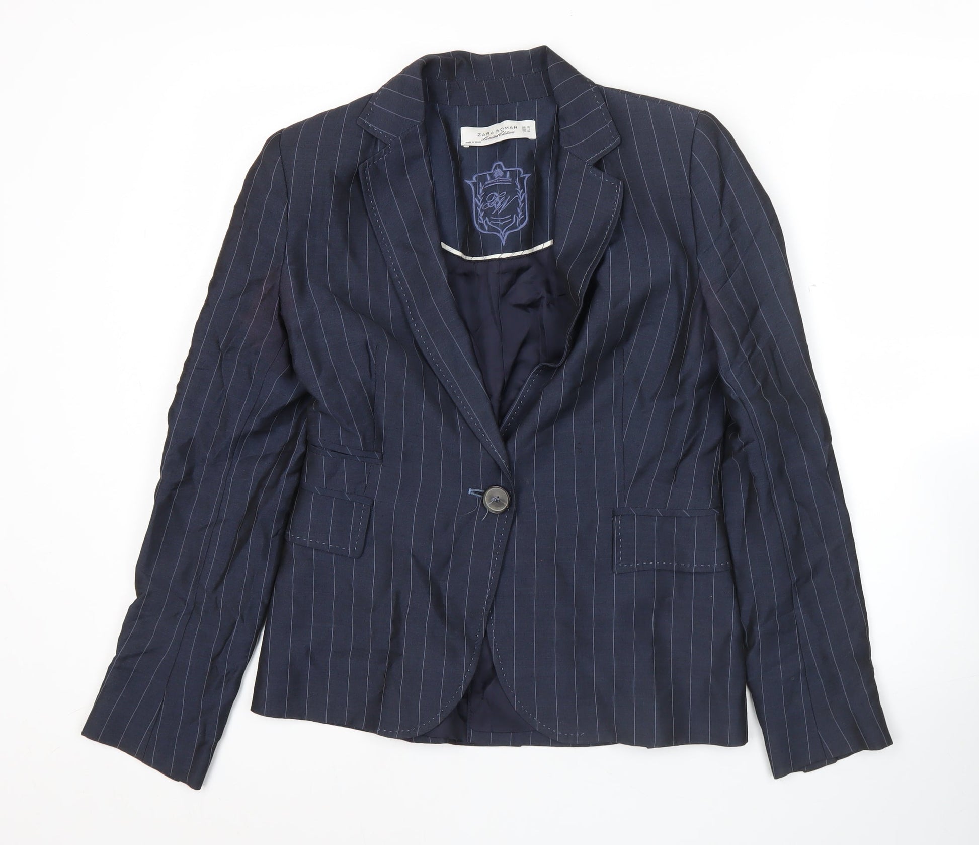Zara Women Blue Pinstripe Blazer Jacket Size 8 Single Breasted
