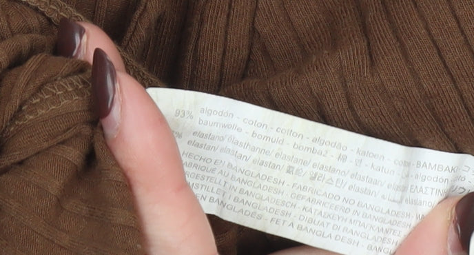 Zara Women Brown Long Sleeve Ribbed Cotton Bodysuit Size L