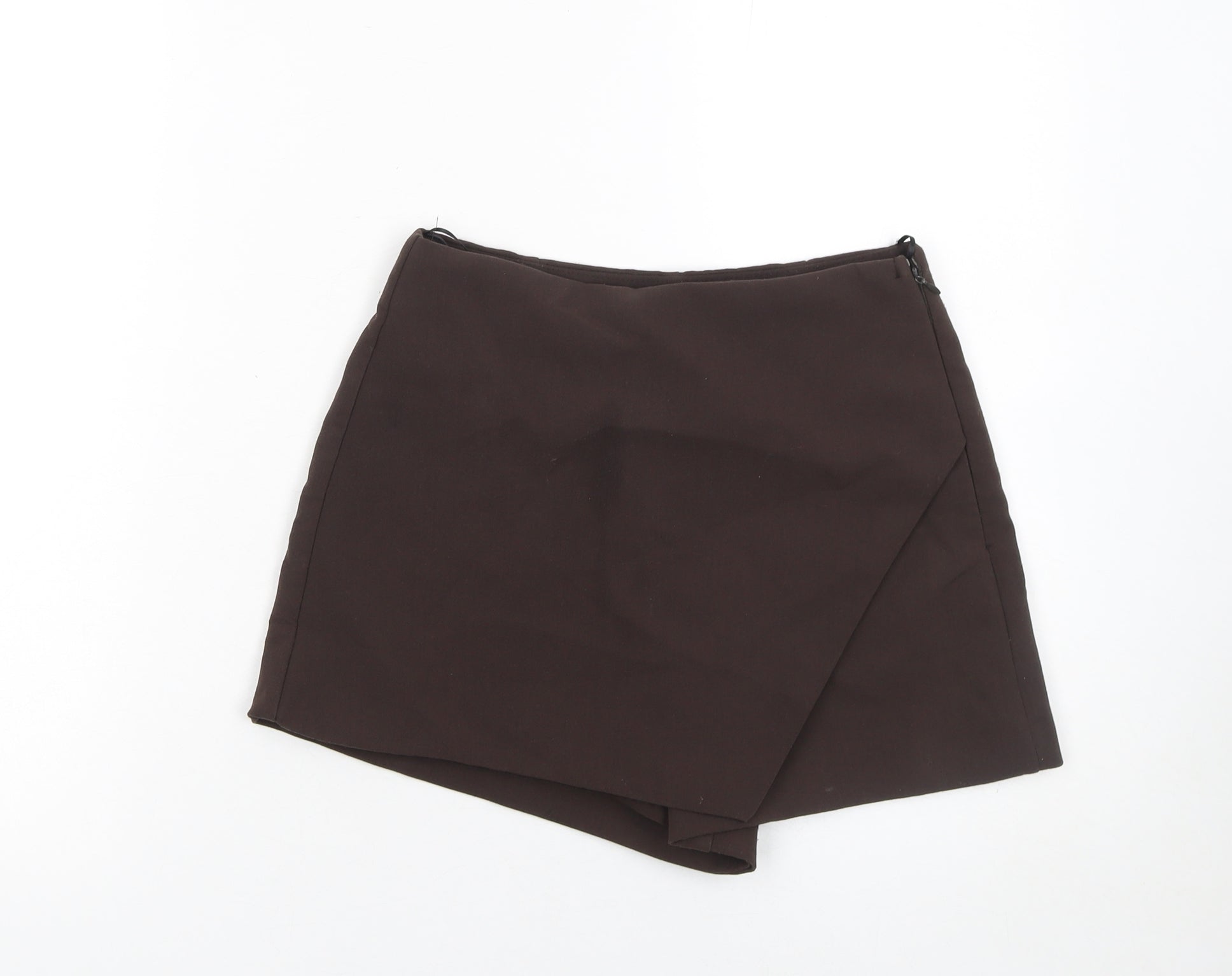 Zara Women Brown Wrap Shorts Size S High Rise Polyester Viscose
