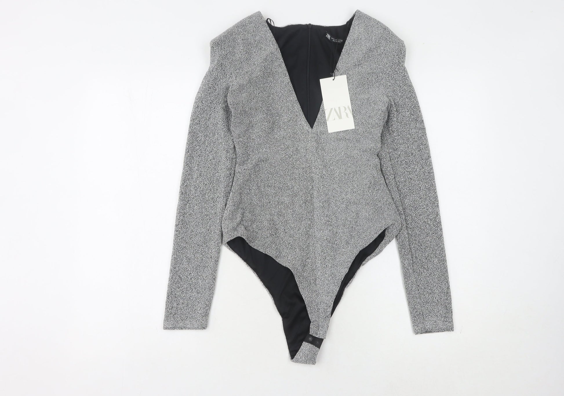 - Keywords: Zara Bodysuit Grey Women Long Sleeve V-Neck Polyester Elastane Medium Autumn Winter New Party Cocktail Stylish