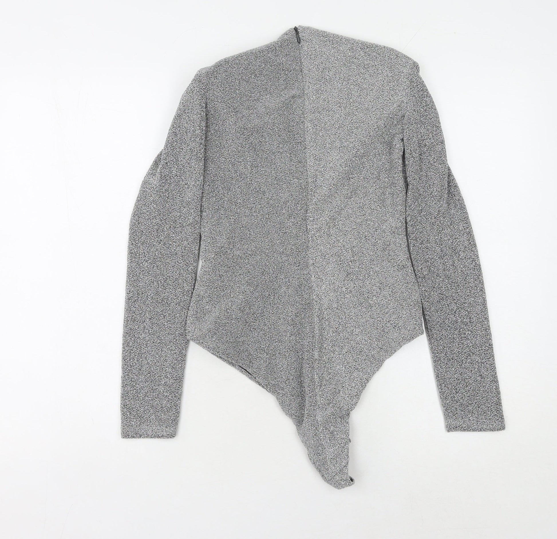 Zara Women Grey Bodysuit M Long Sleeve V-Neck