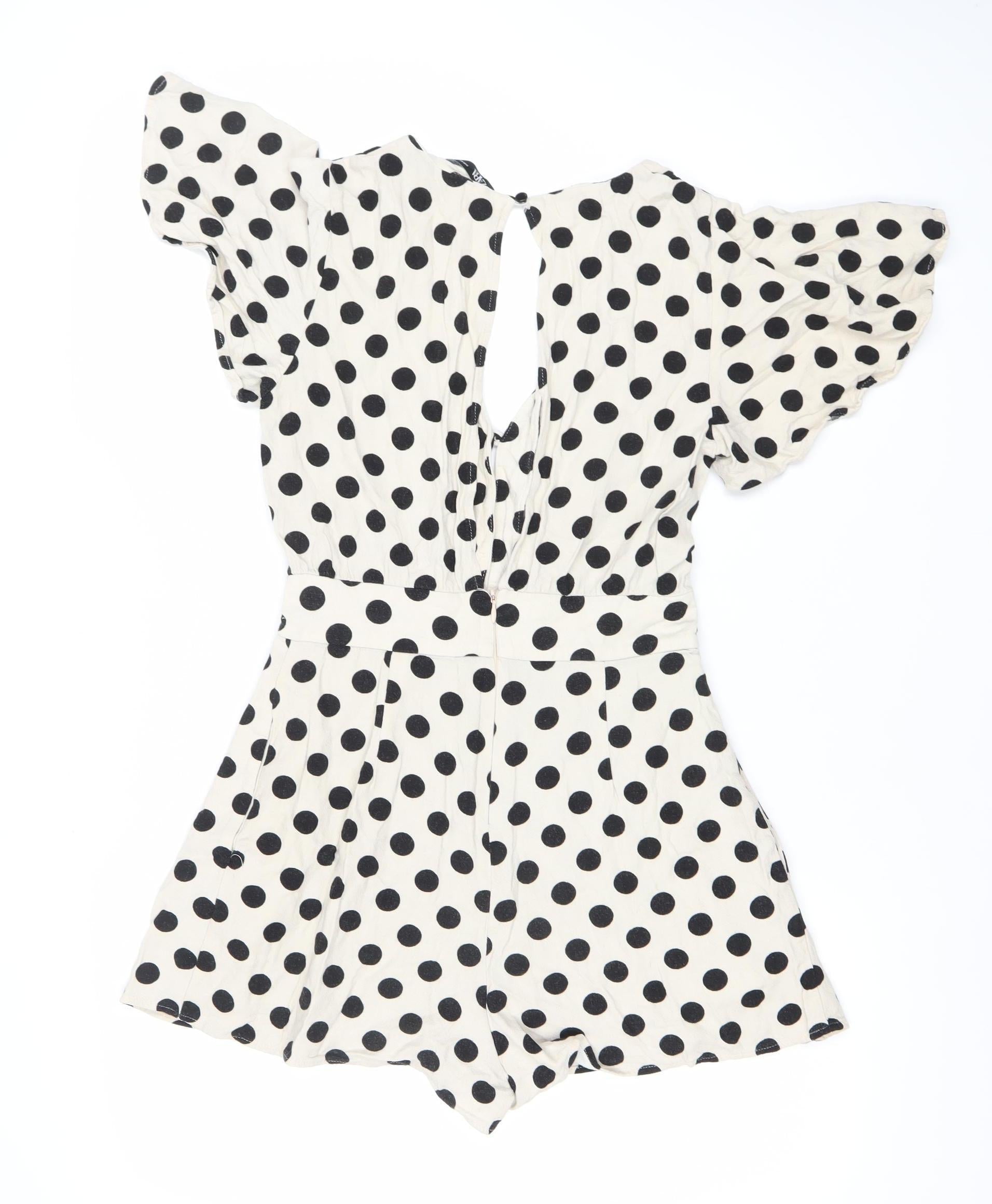 ZARA Women Ivory Black Polka Dot V-Neck Playsuit Size 6