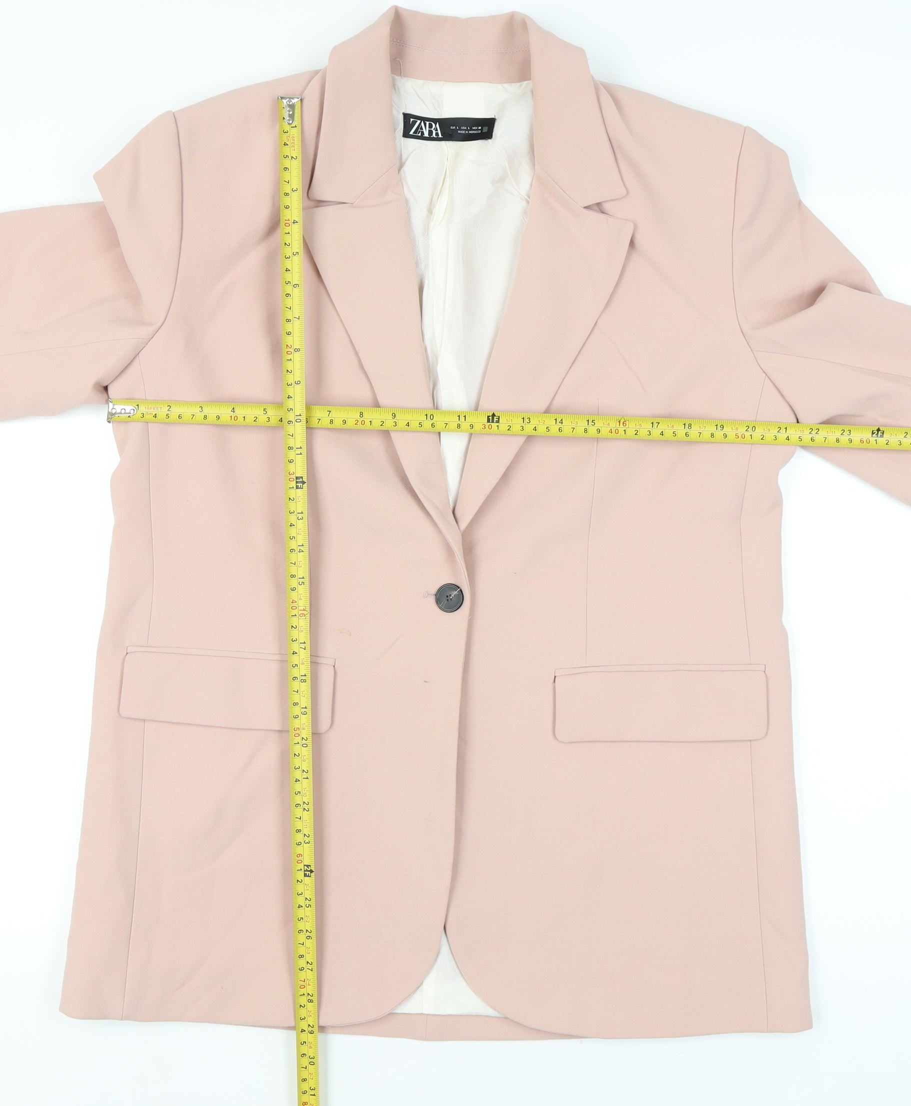 Zara Women Pink Blazer Jacket Size L Single Breasted Notch Lapel