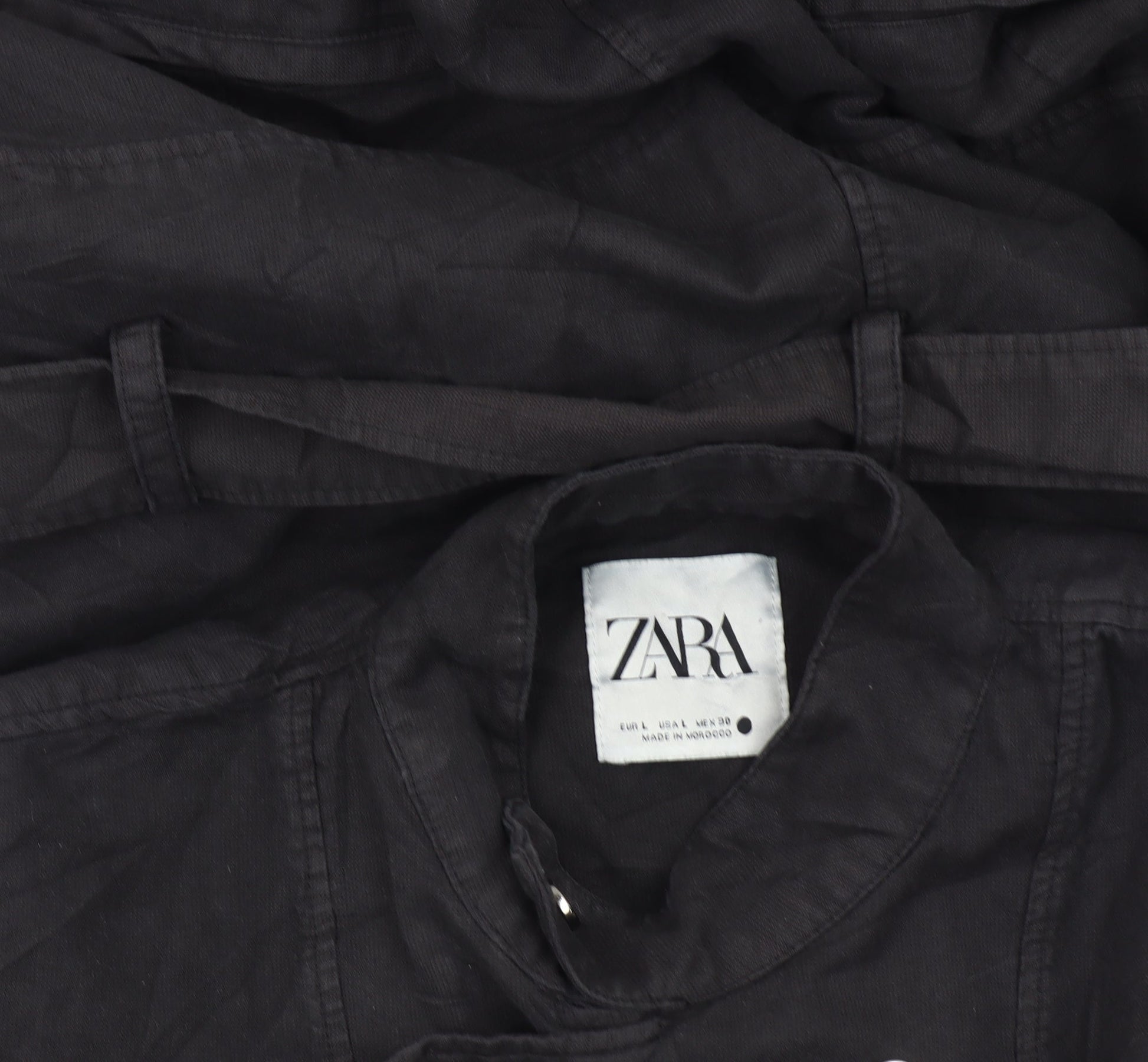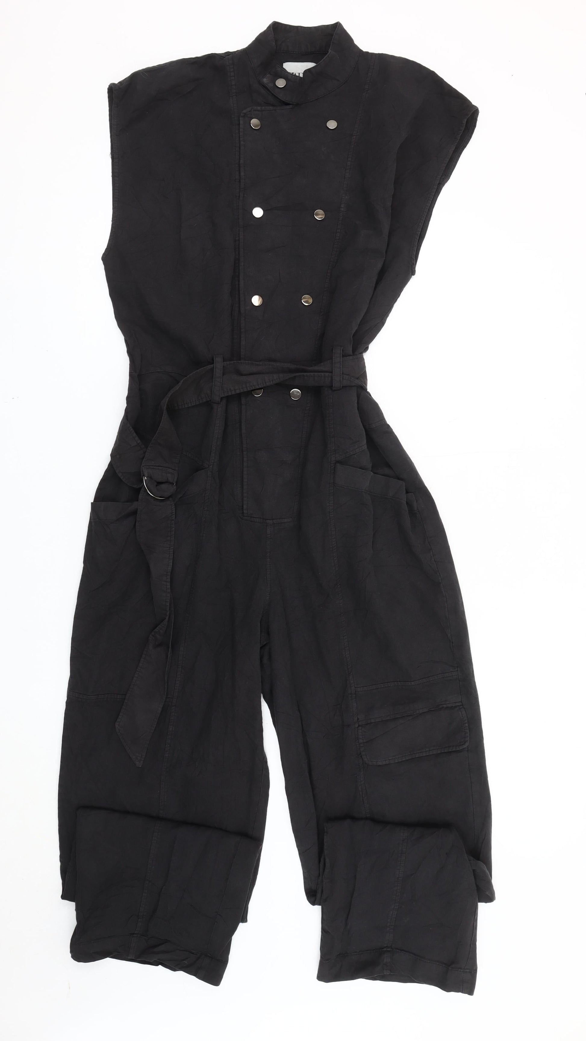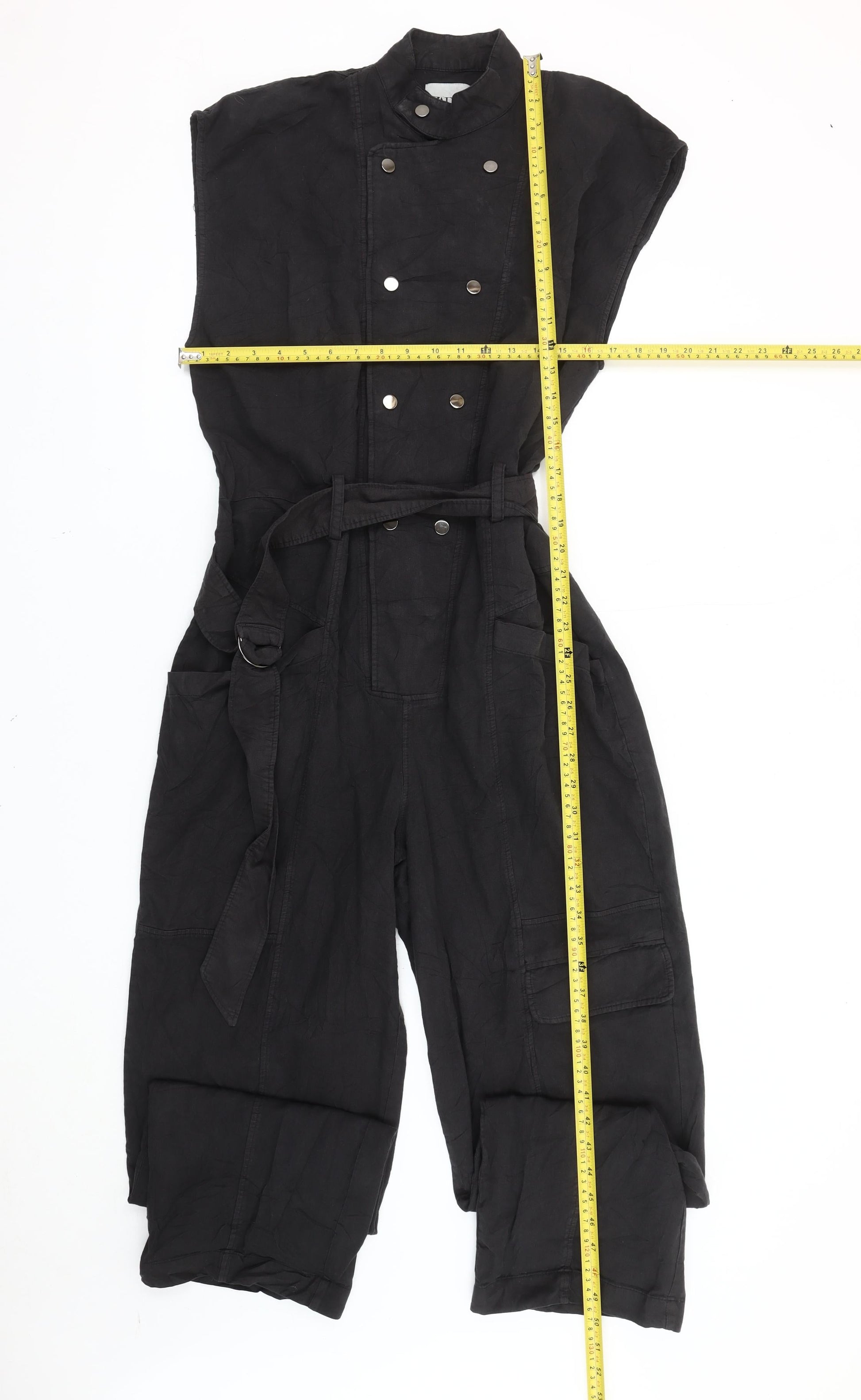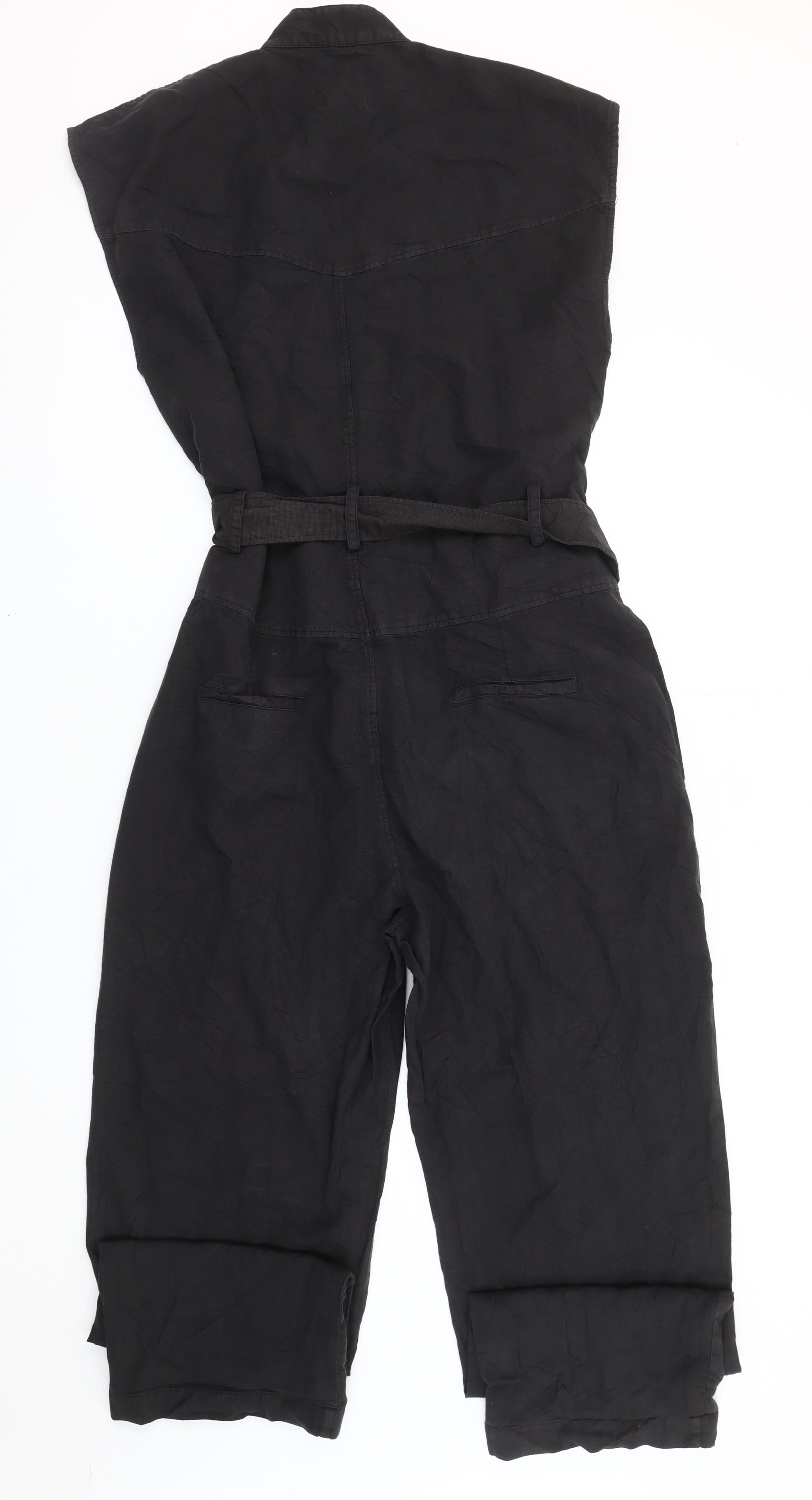 Zara Women’s Black Linen Sleeveless Jumpsuit Size 10 Belted Buttoned