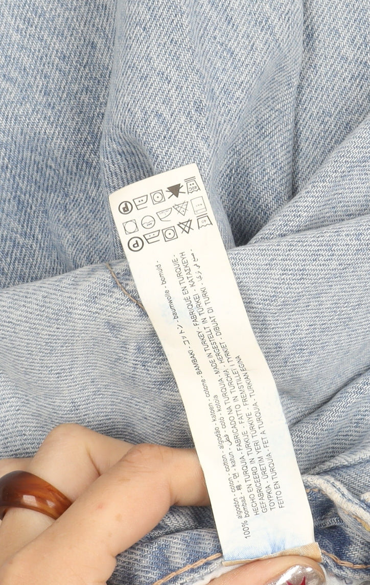 Zara Women’s Blue Distressed Straight Jeans Size 12 High Rise