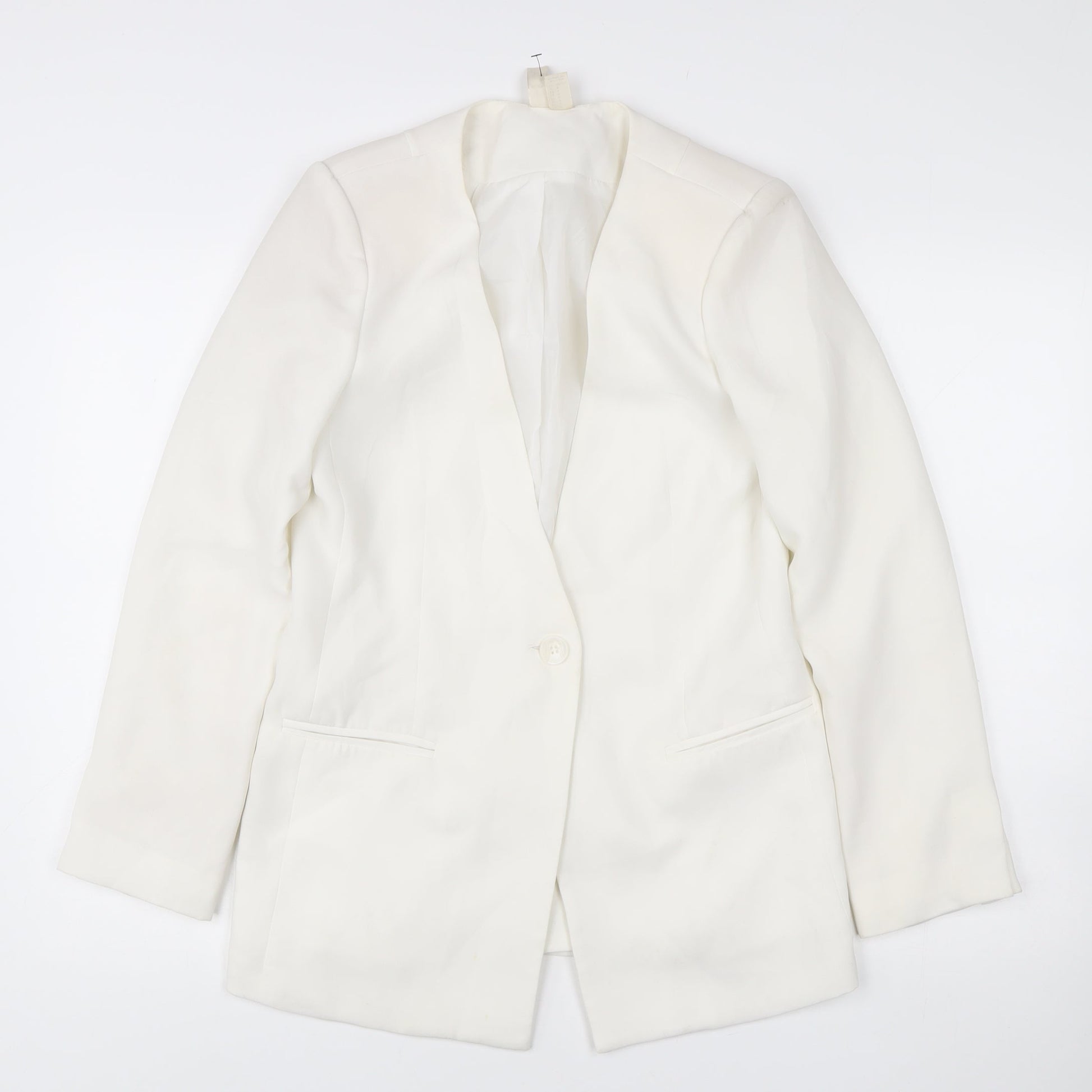 Zara Women White Shawl Collar Suit Jacket Size 12 Tailored Blazer