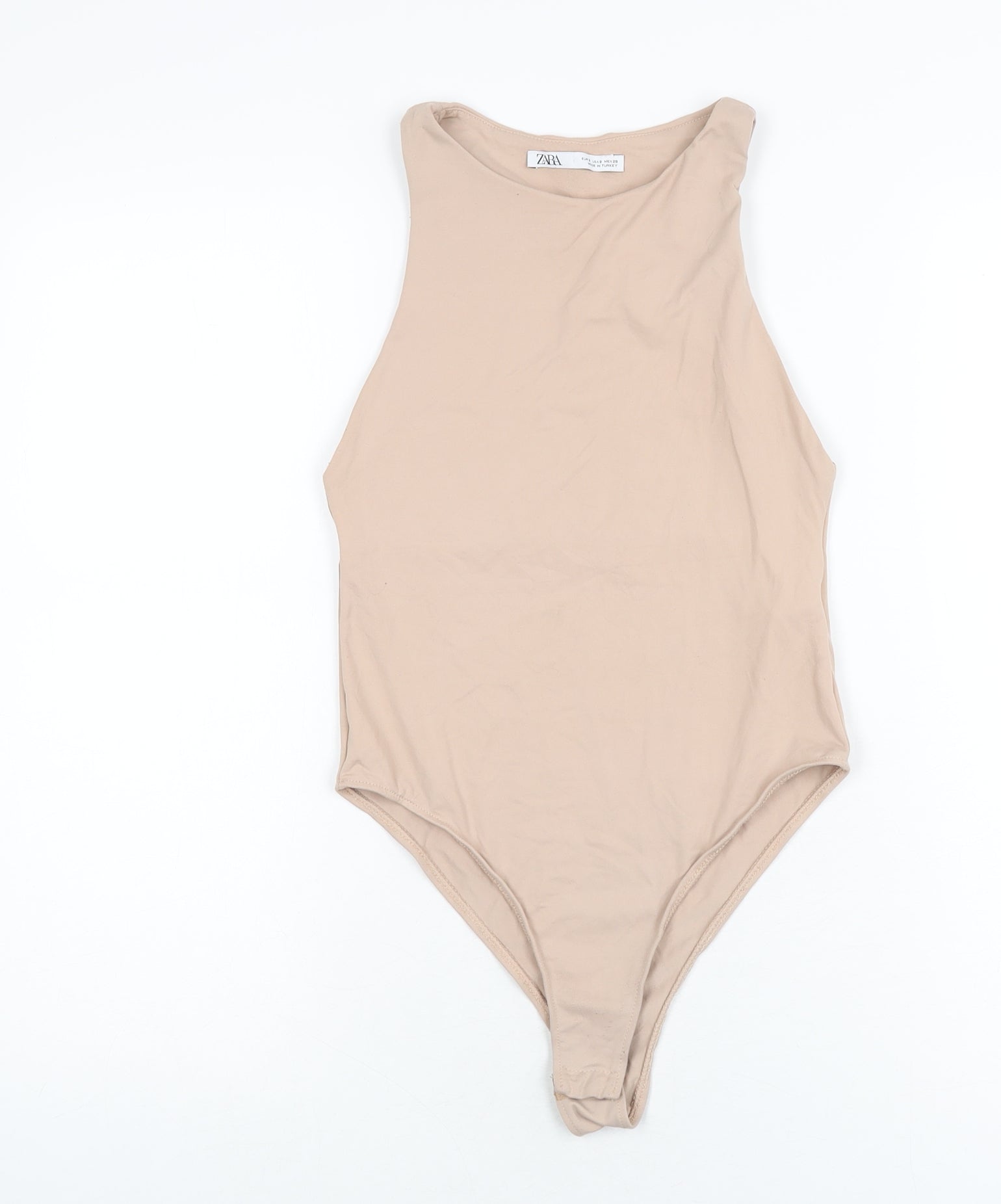 Zara Womens Beige Polyamide Bodysuit One-Piece Size S Snap