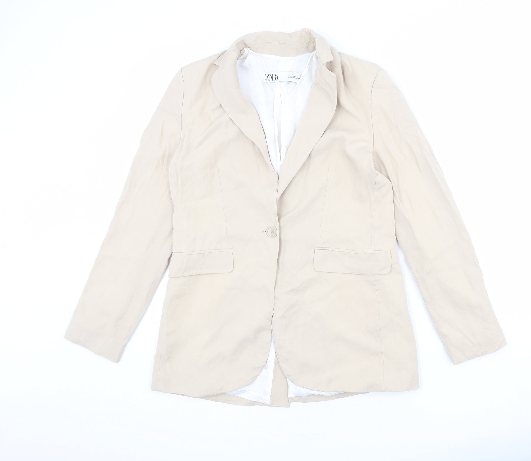 Zara Womens Beige Viscose Jacket Blazer Size XS