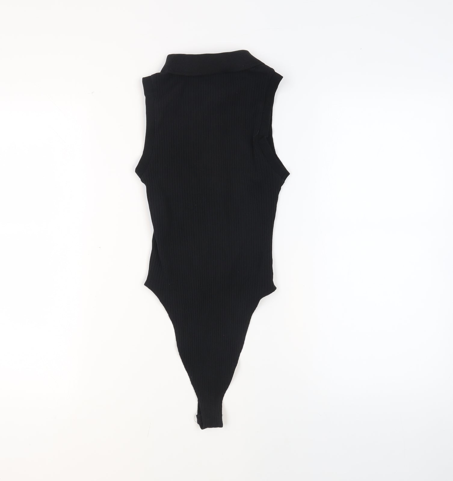 Zara Womens Black Cotton Bodysuit One-Piece Size S Button