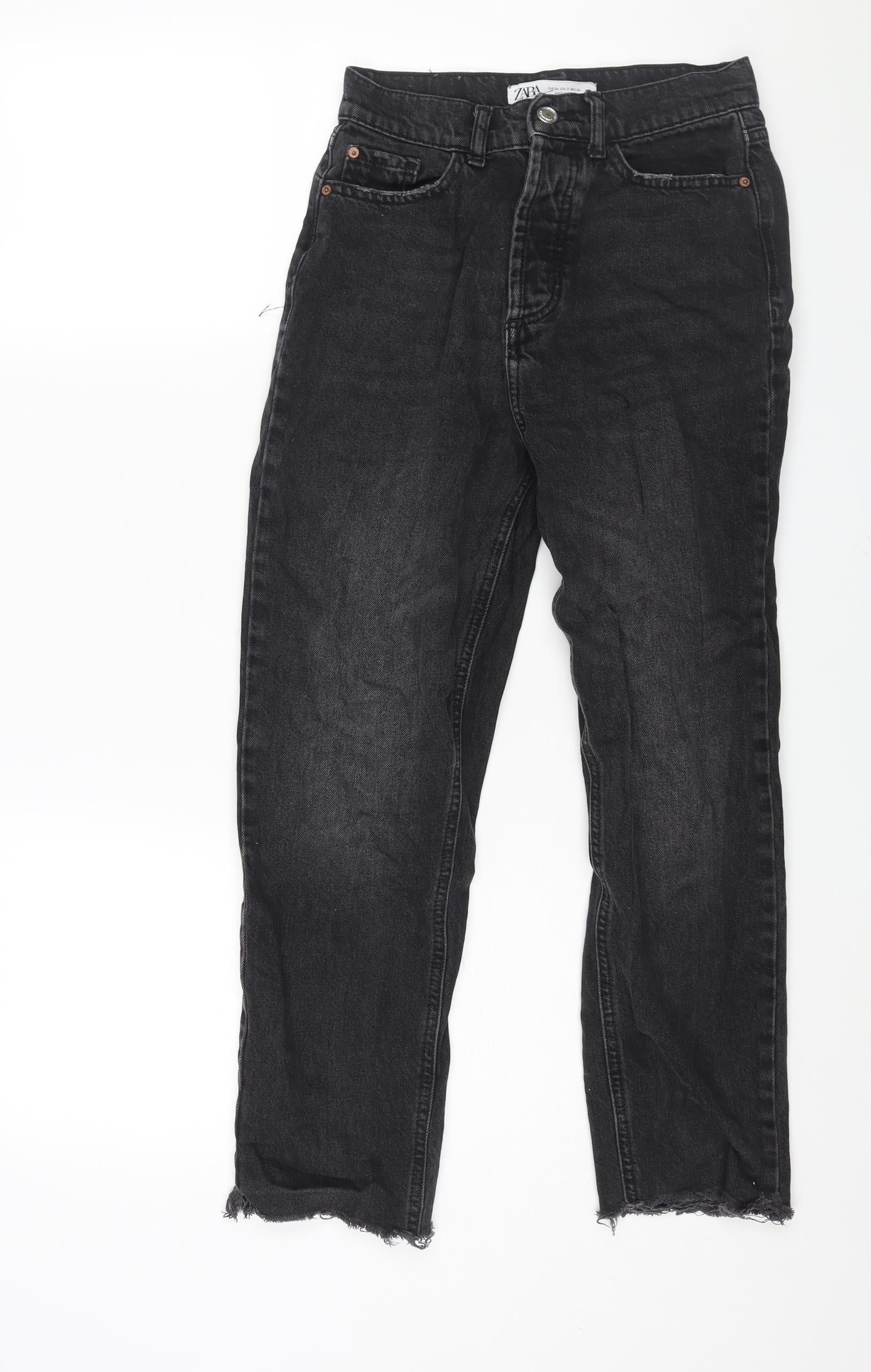 Zara Womens Black Cotton Mom Jeans Size 6 L24 in Regular Zip