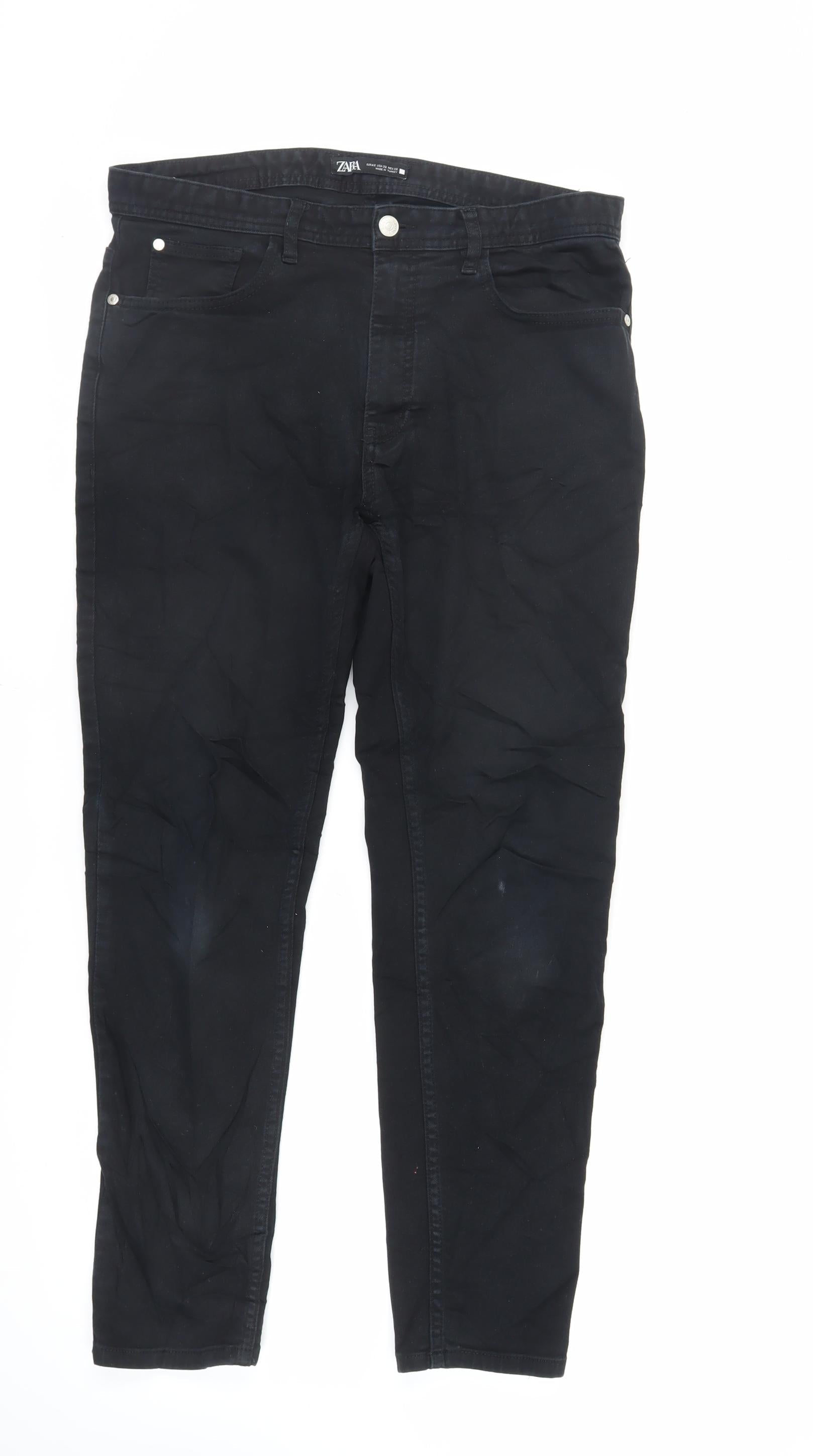 Zara Womens Black Cotton Skinny Jeans Size 14 L29 in Regular Zip