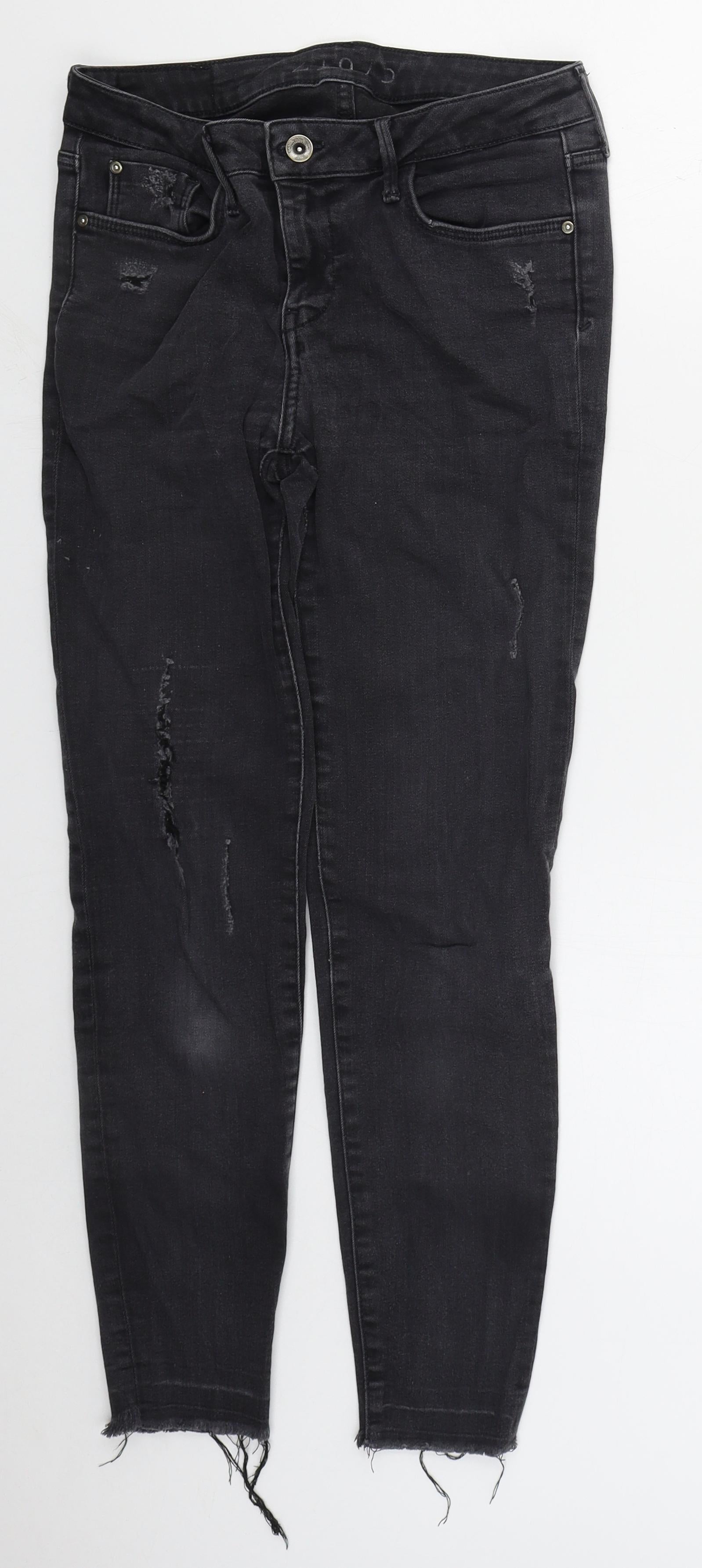 Zara Womens Black Cotton Skinny Jeans Size 8 L27 in Regular Button