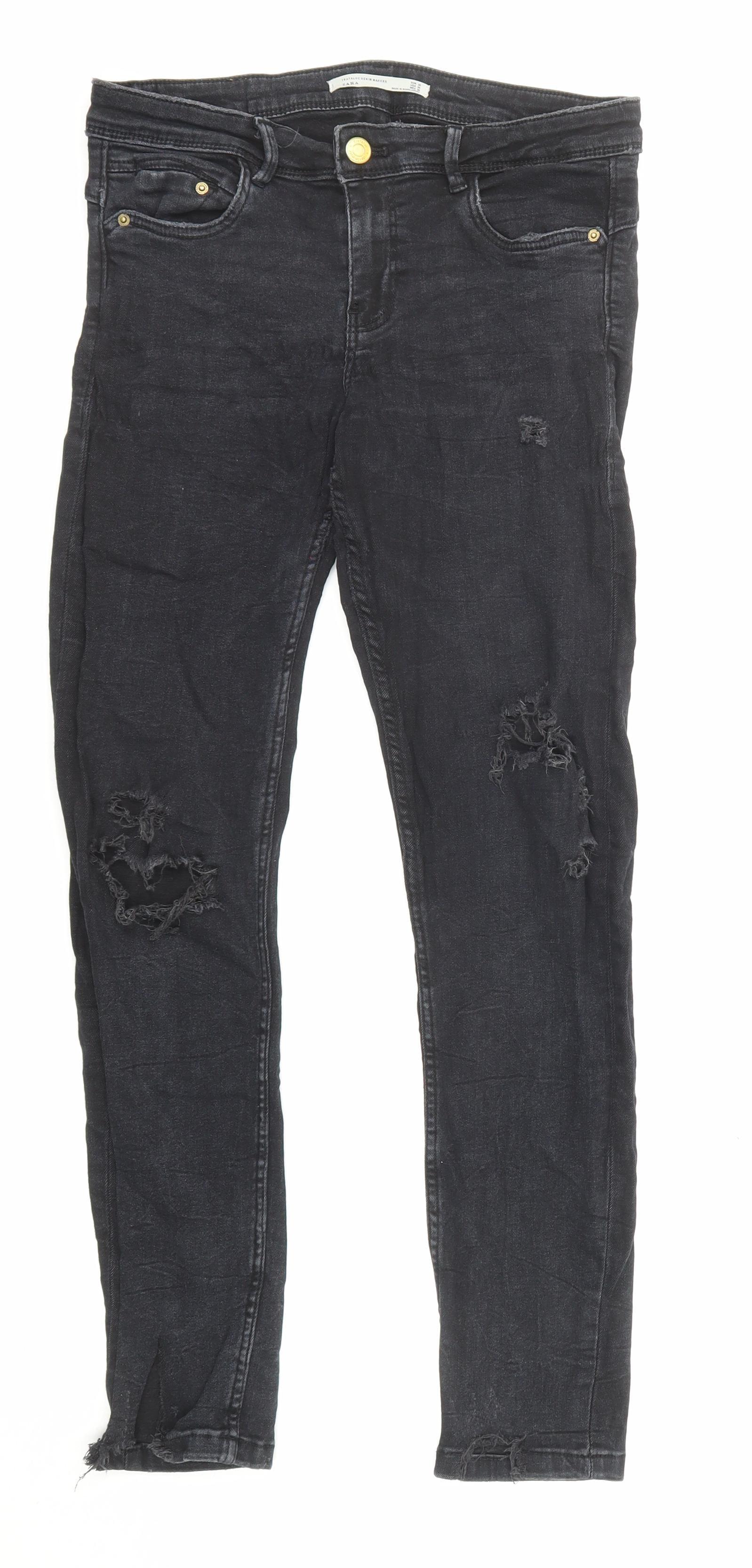Zara Womens Black Cotton Skinny Jeans Size 8 L27 in Regular Zip