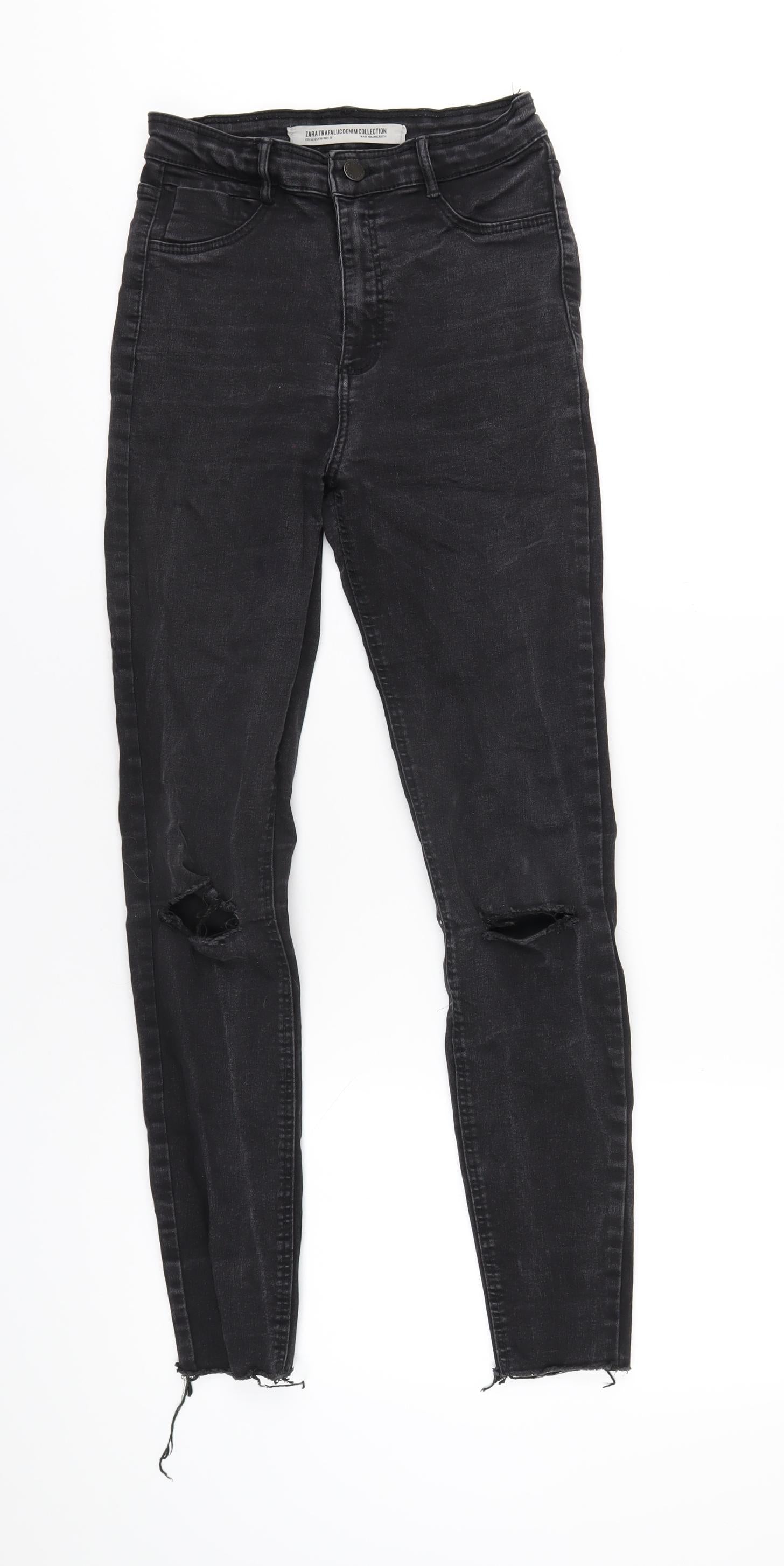 Zara Womens Black Cotton Skinny Jeans Size 8 L28 in Regular Zip