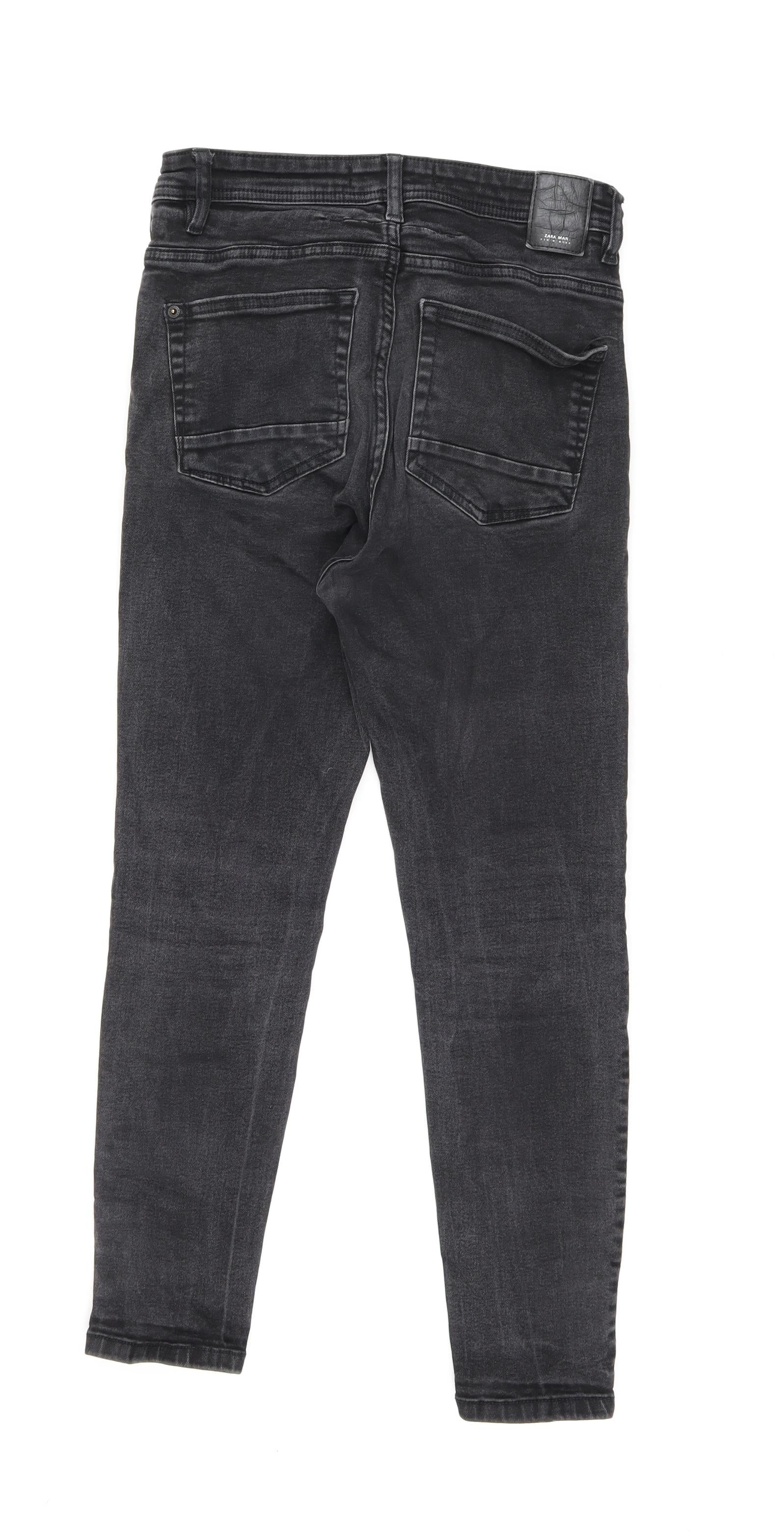 Zara Womens Black Cotton Straight Jeans Size 10 L24 in Regular Zip - Acid Wash Distressing