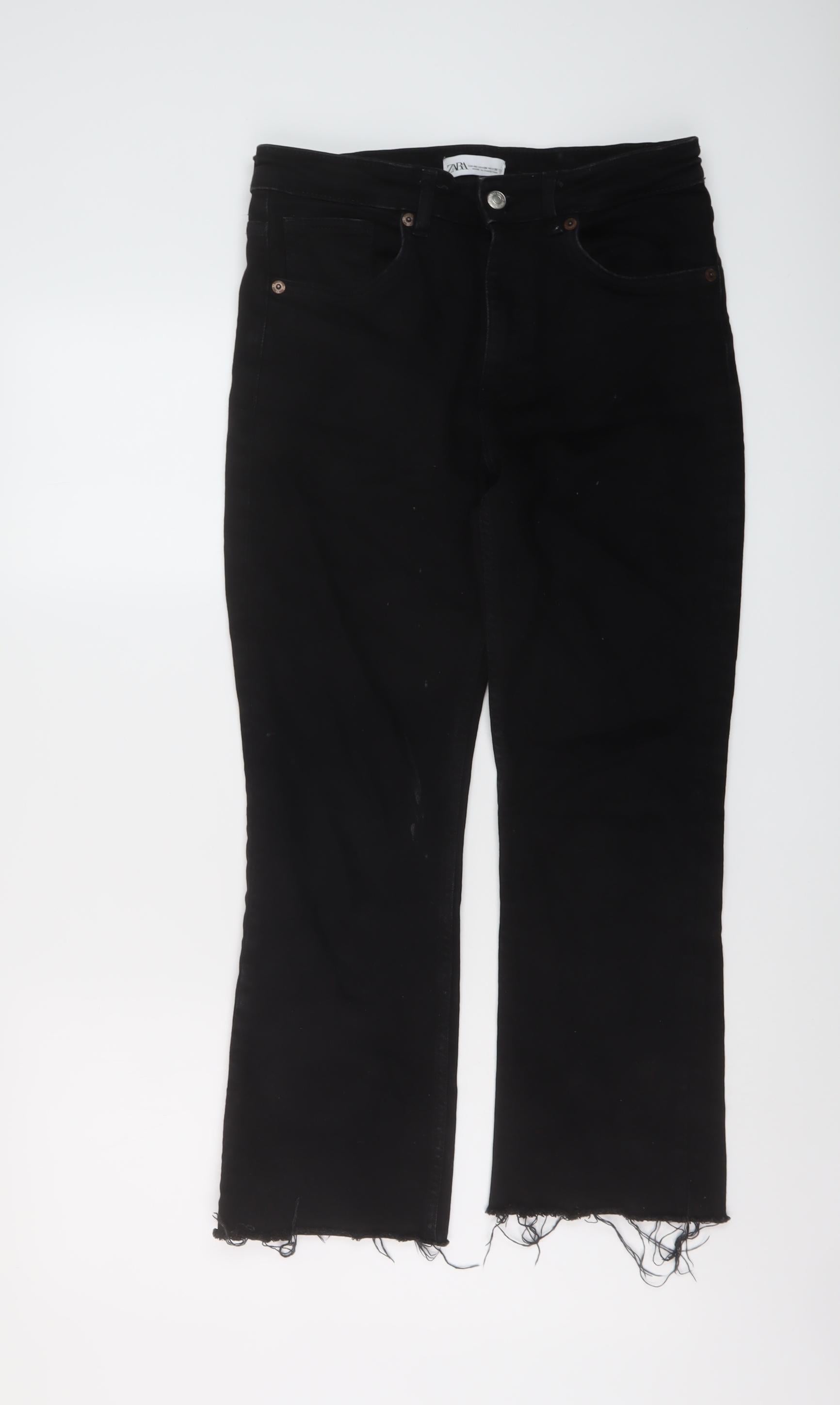 Zara Womens Black Cotton Straight Jeans Size 12 L25 in Regular Button