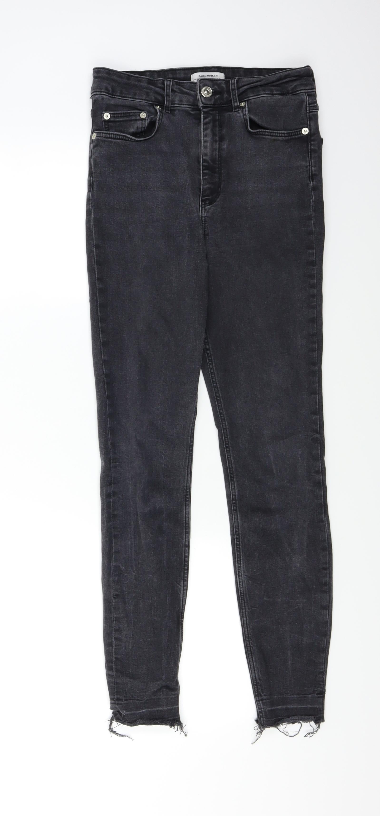 Zara Womens Black Denim Skinny Jeans Size 4 L24 in - Distressed Hem