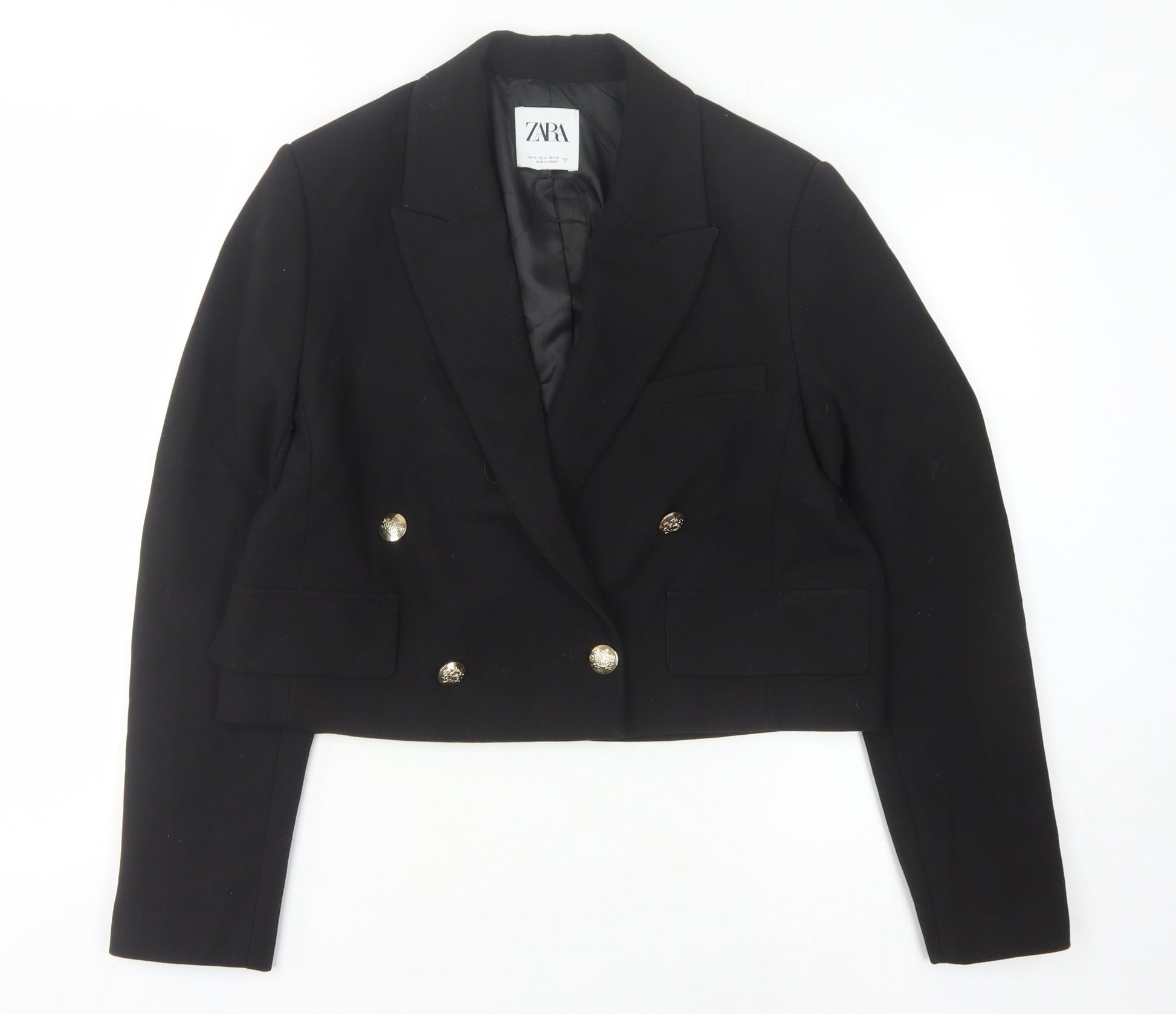 Zara Women's Black Double-Breasted Cropped Blazer, Size 12