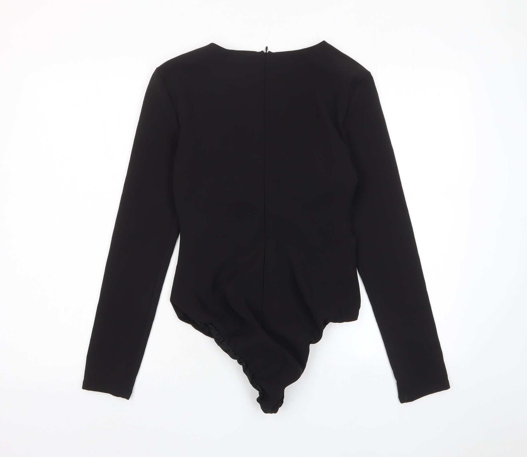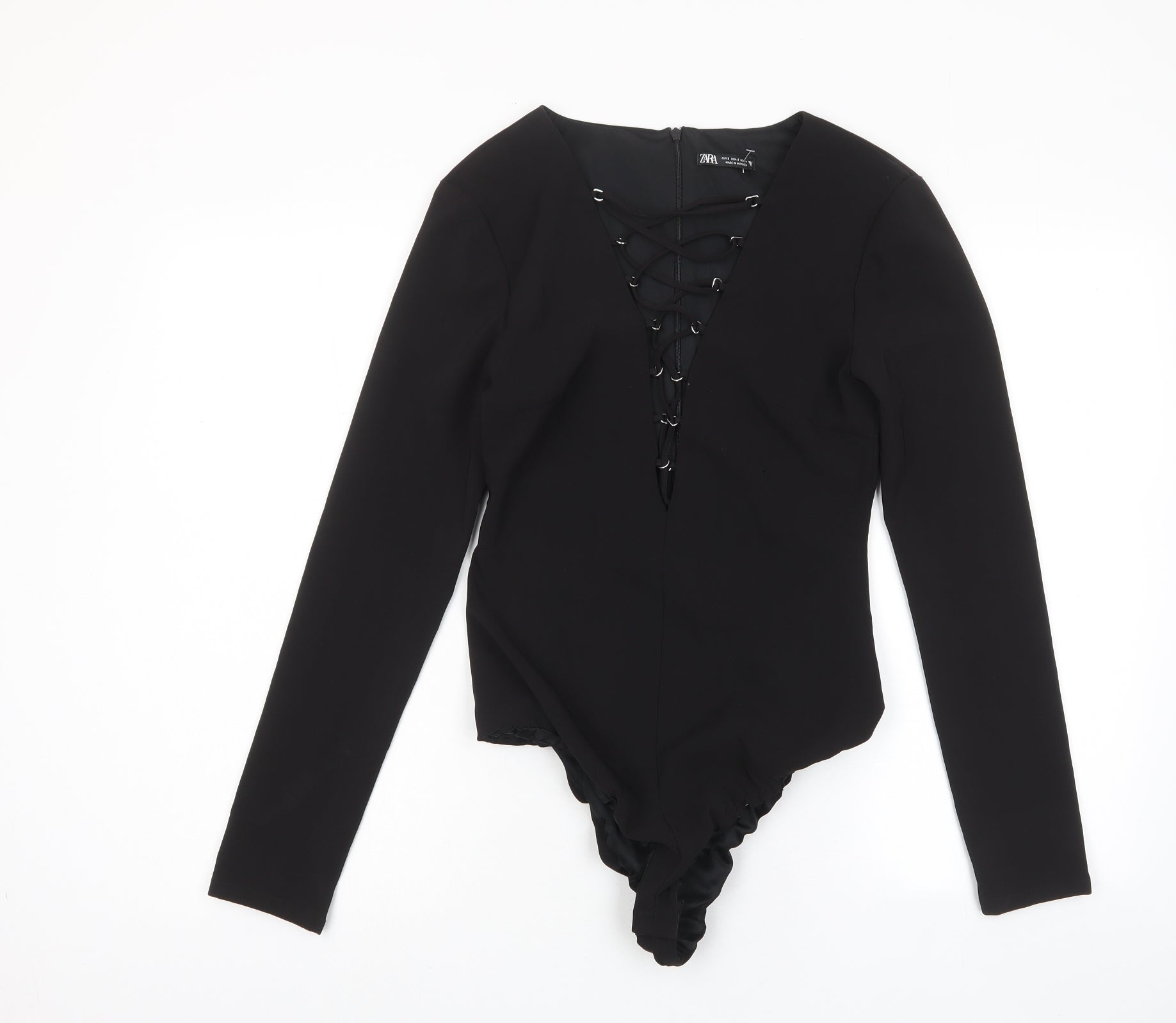 Zara Womens Black Polyester Bodysuit One-Piece Size S Zip - Cross neckline
