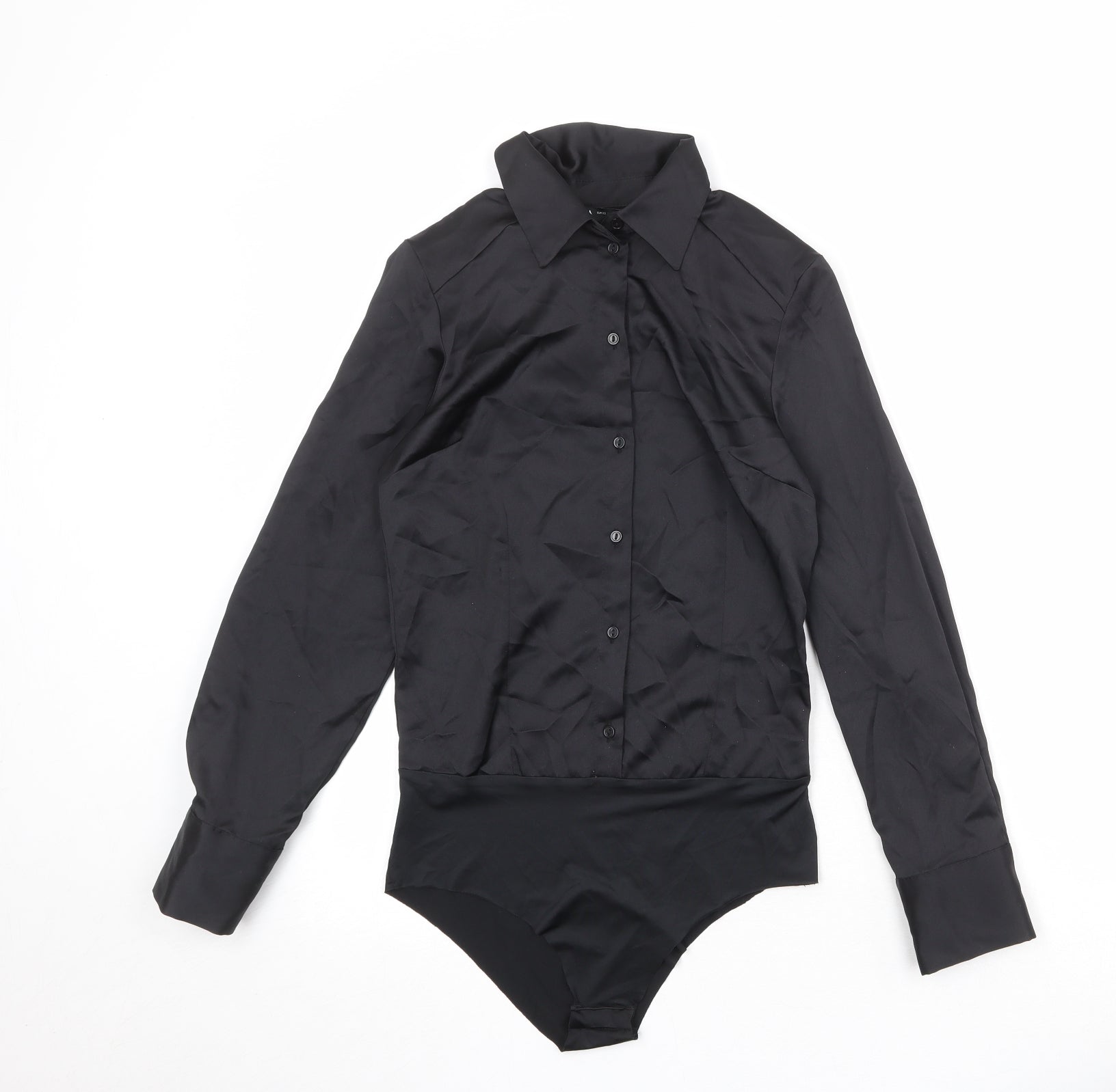 Zara Womens Black Polyester Bodysuit One-Piece Size XS Snap