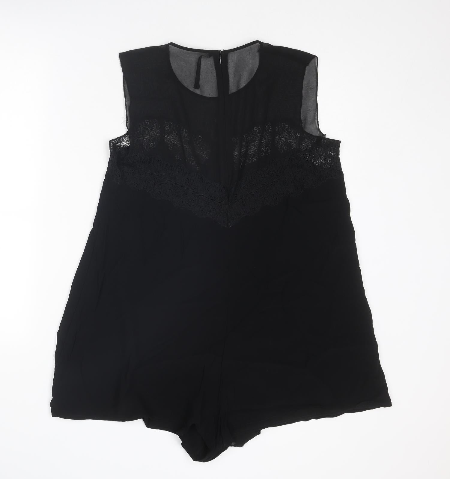 Zara Womens Black Polyester Playsuit One-Piece Size L L3 in Zip