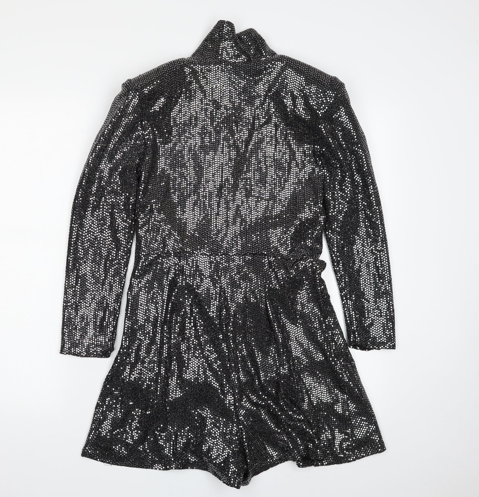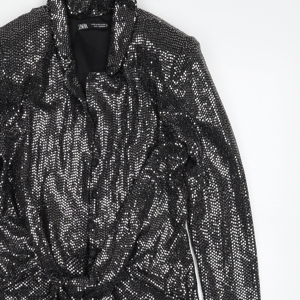 Zara Womens Black Polyester Romper One-Piece Size XS Button - Tie