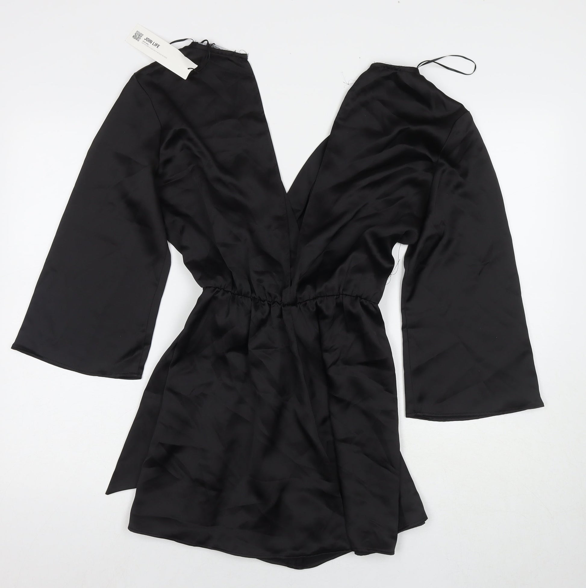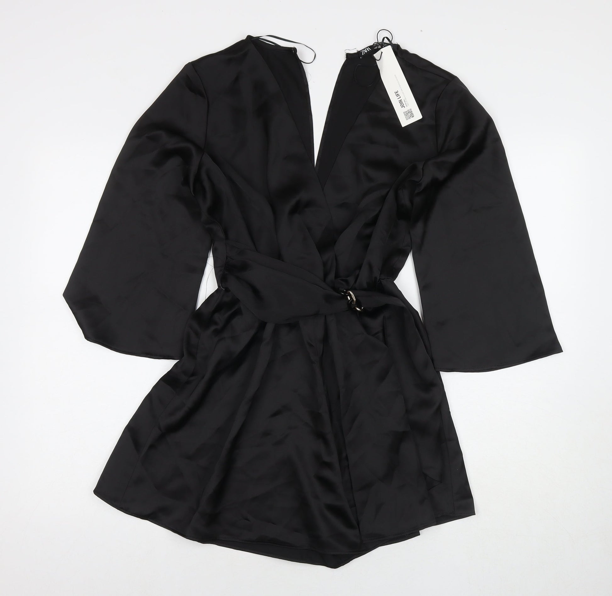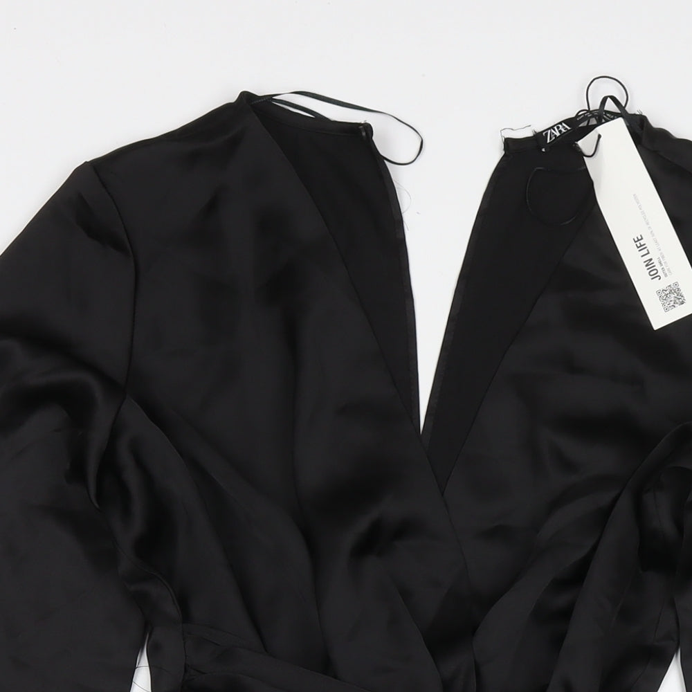 Zara Womens Black Polyester Romper One-Piece Size XS L3 in Button