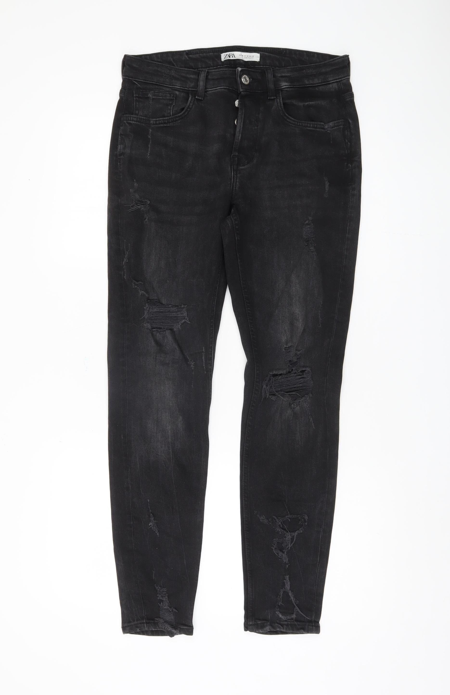 Zara Women's Black Skinny Jeans Size 10 Distressed