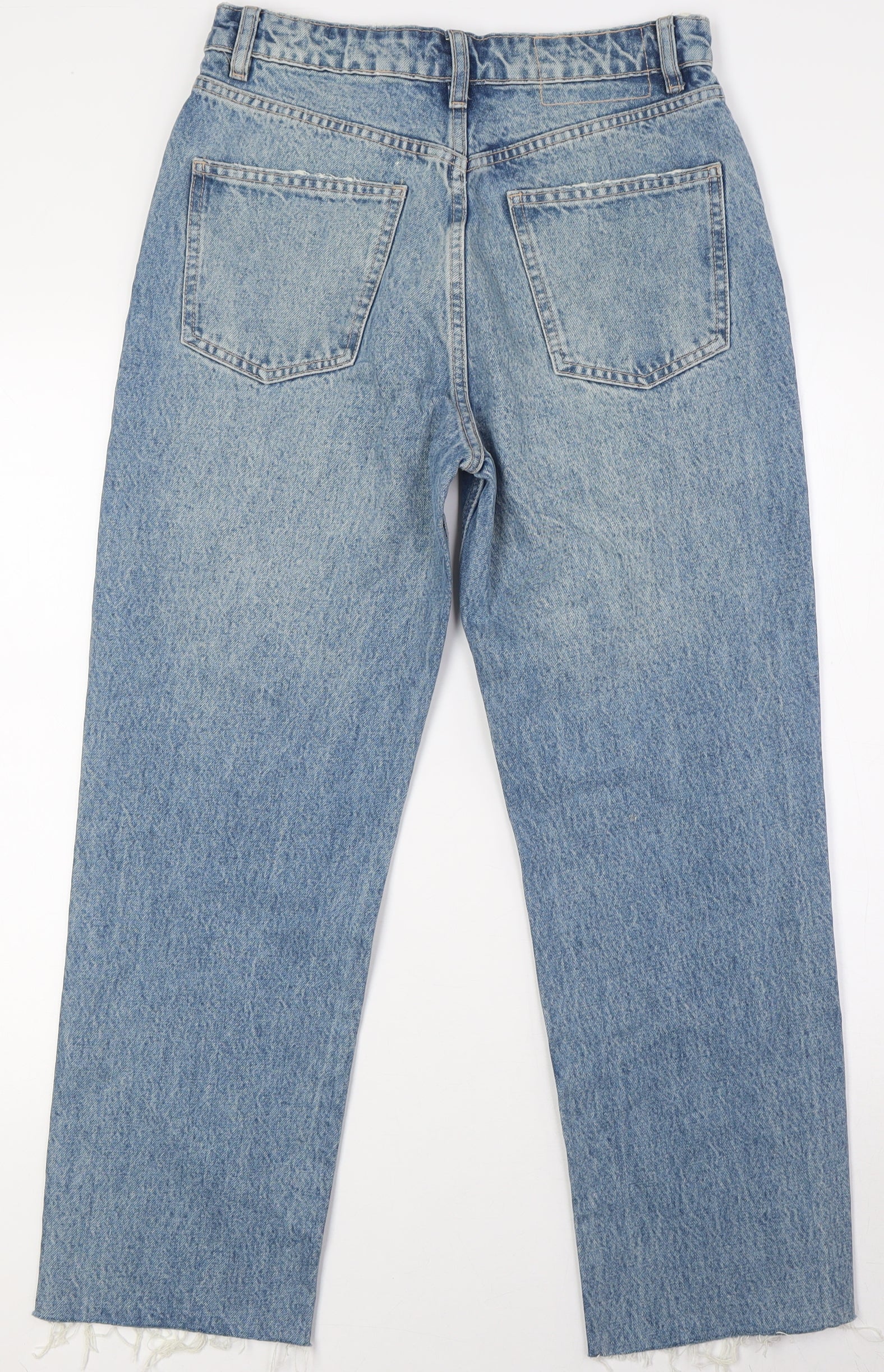 Zara Womens Blue Cotton Straight Jeans Size 10 L27 in Regular Button - Raw Hem