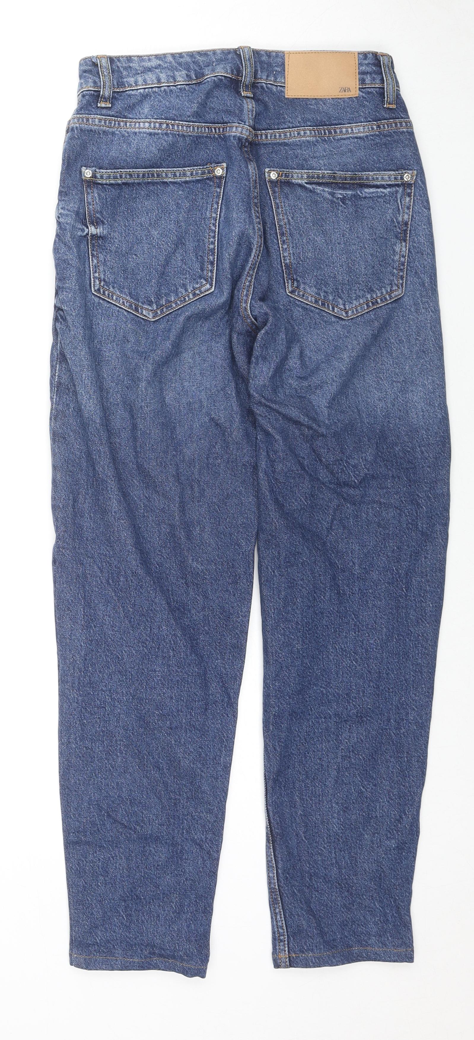 Zara Womens Blue Cotton Straight Jeans Size 36 in L26 in Regular Zip