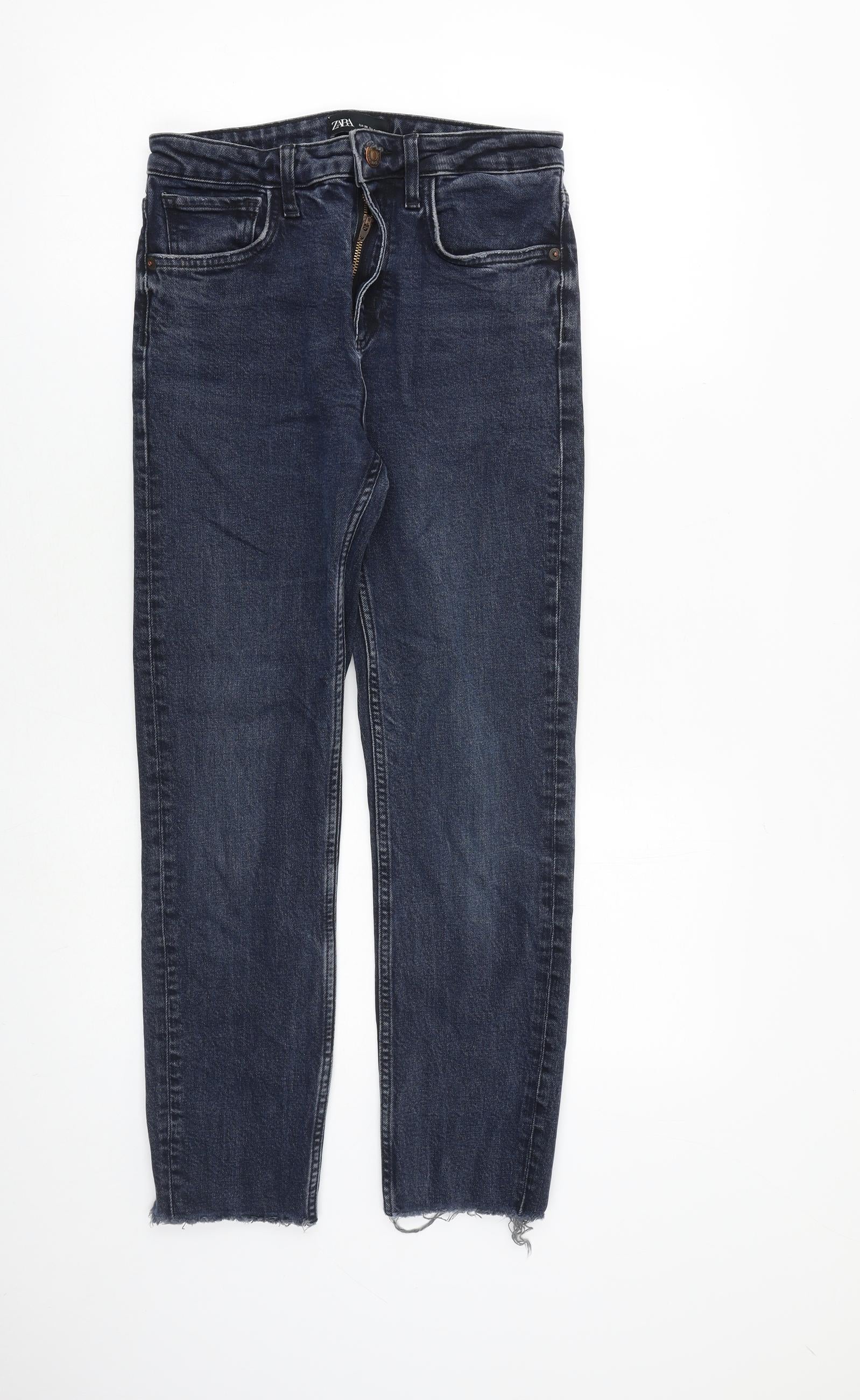 Zara Womens Blue Cotton Straight Jeans Size 8 L26 in Regular Zip - Raw Hem