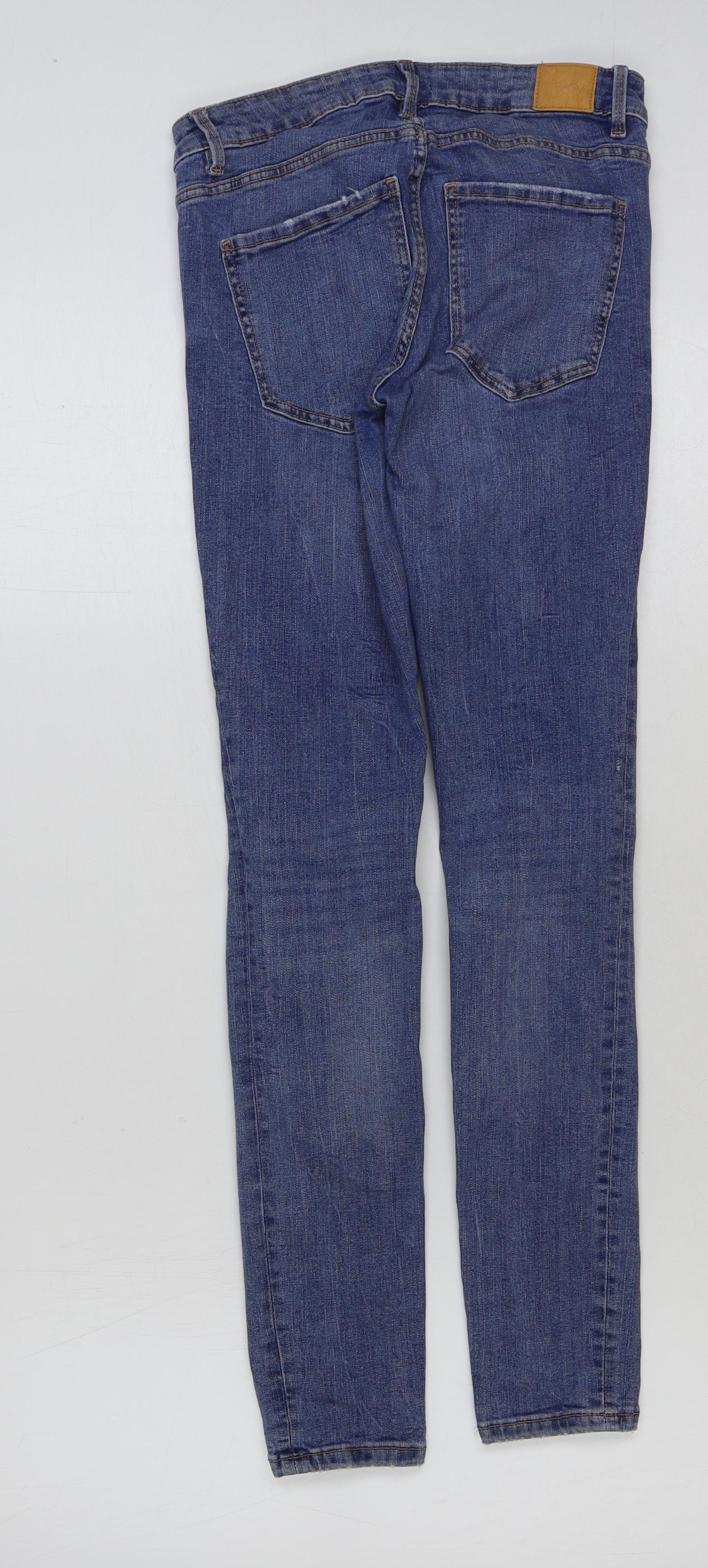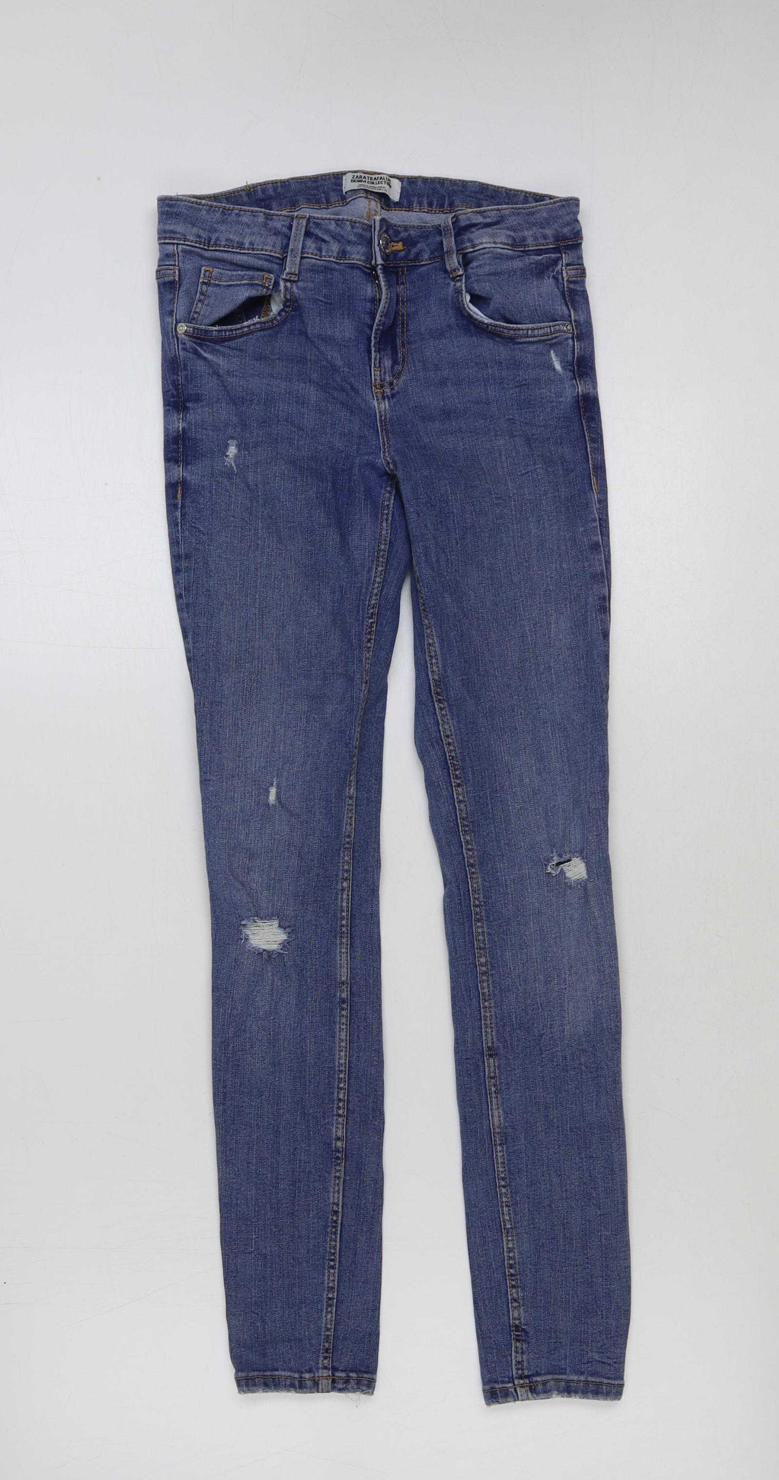 Zara Womens Blue Cotton Straight Jeans Size 8 L28 in Regular Button - Distressed