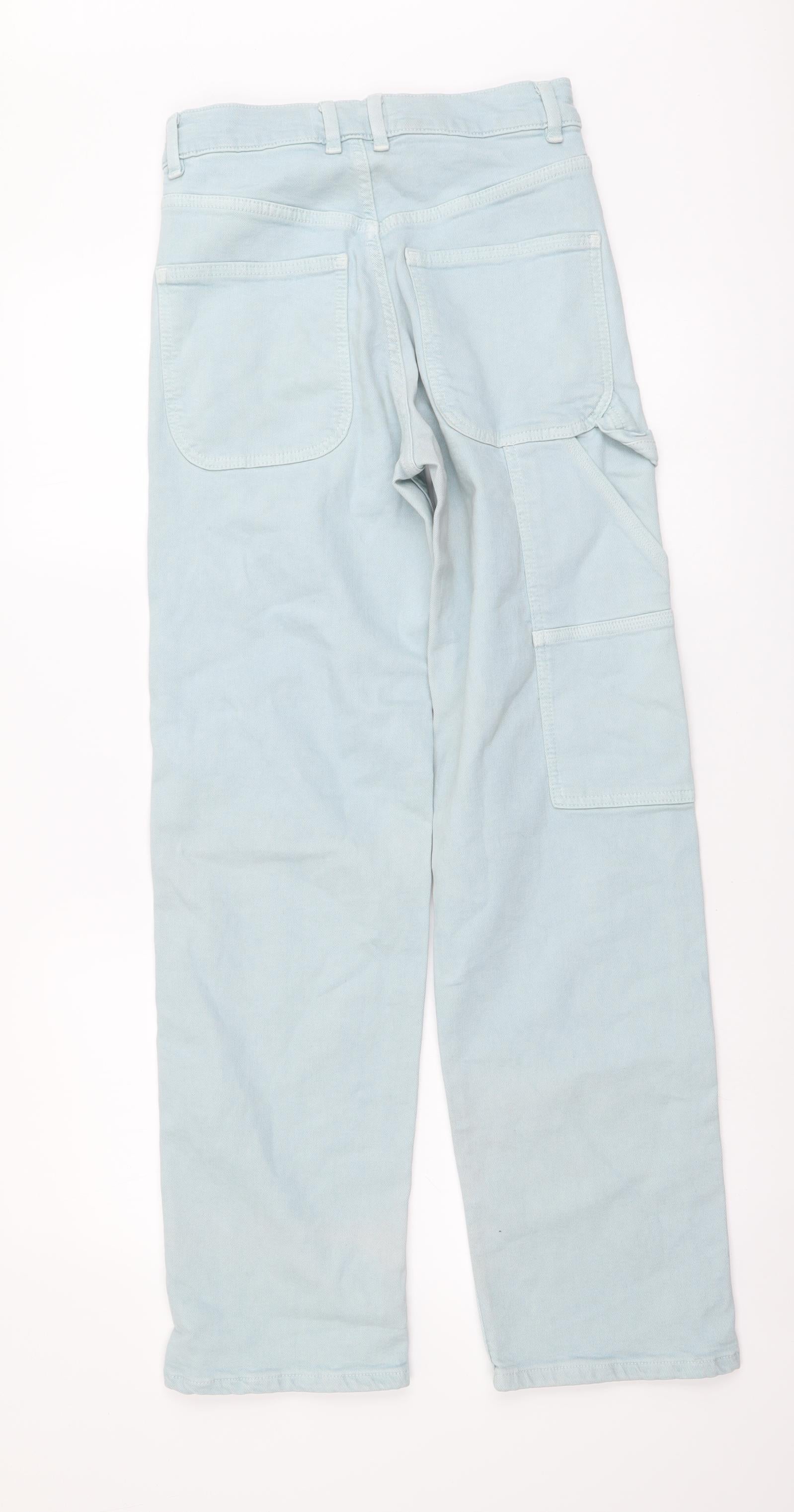 Zara Womens Blue Cotton Straight Jeans Size XS L29 in Regular Button