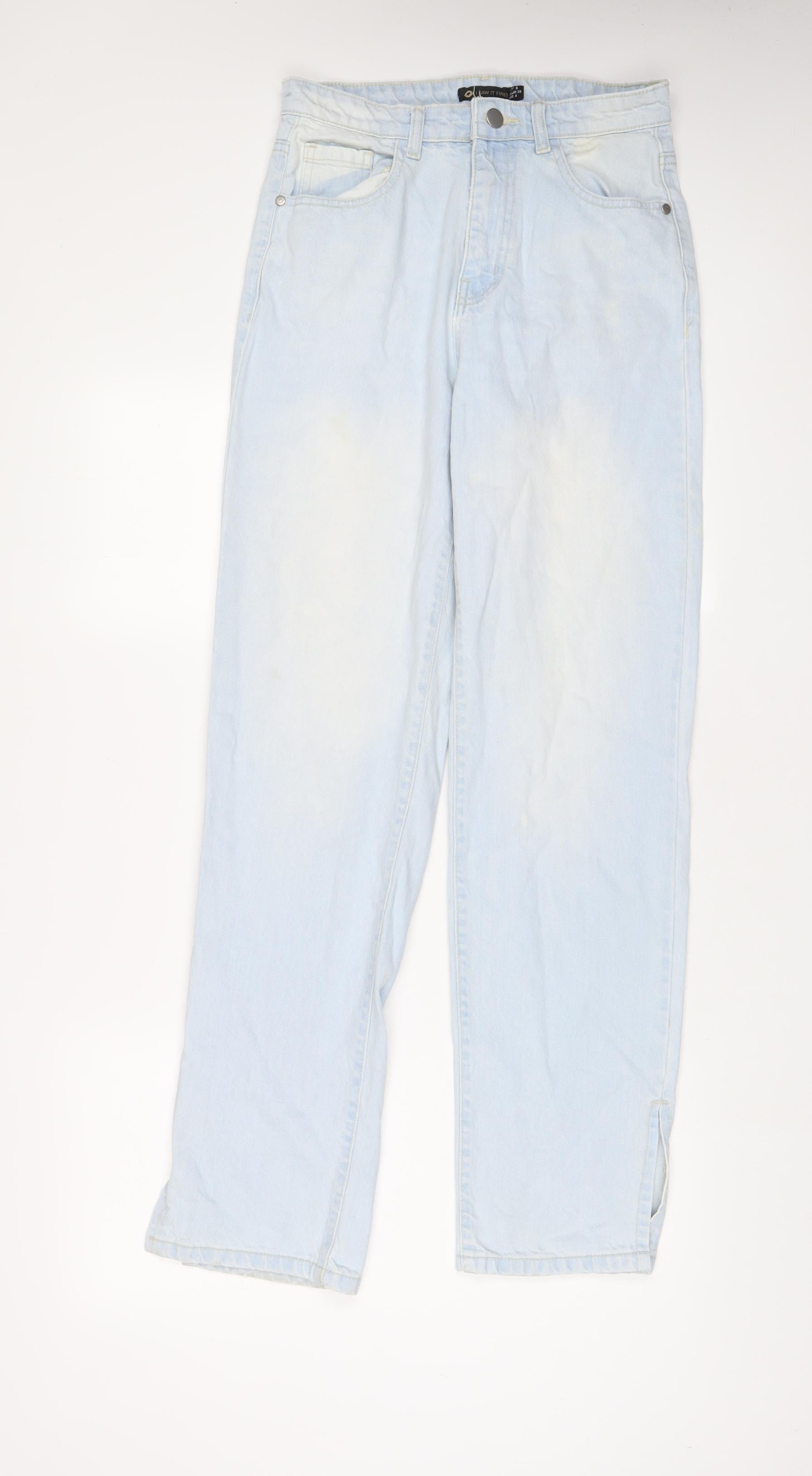 Zara Womens Blue Cotton Wide-Leg Jeans Size 8 L31 in Regular Zip