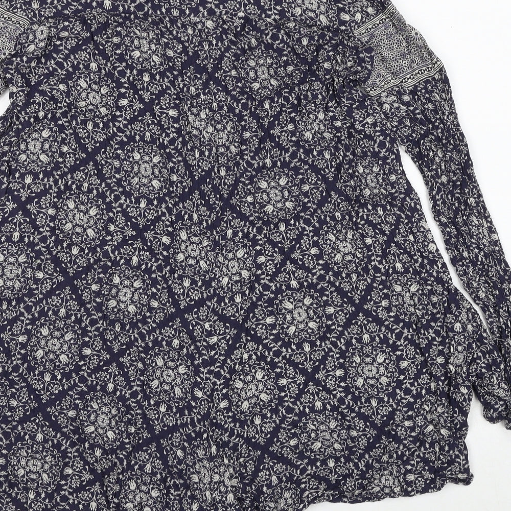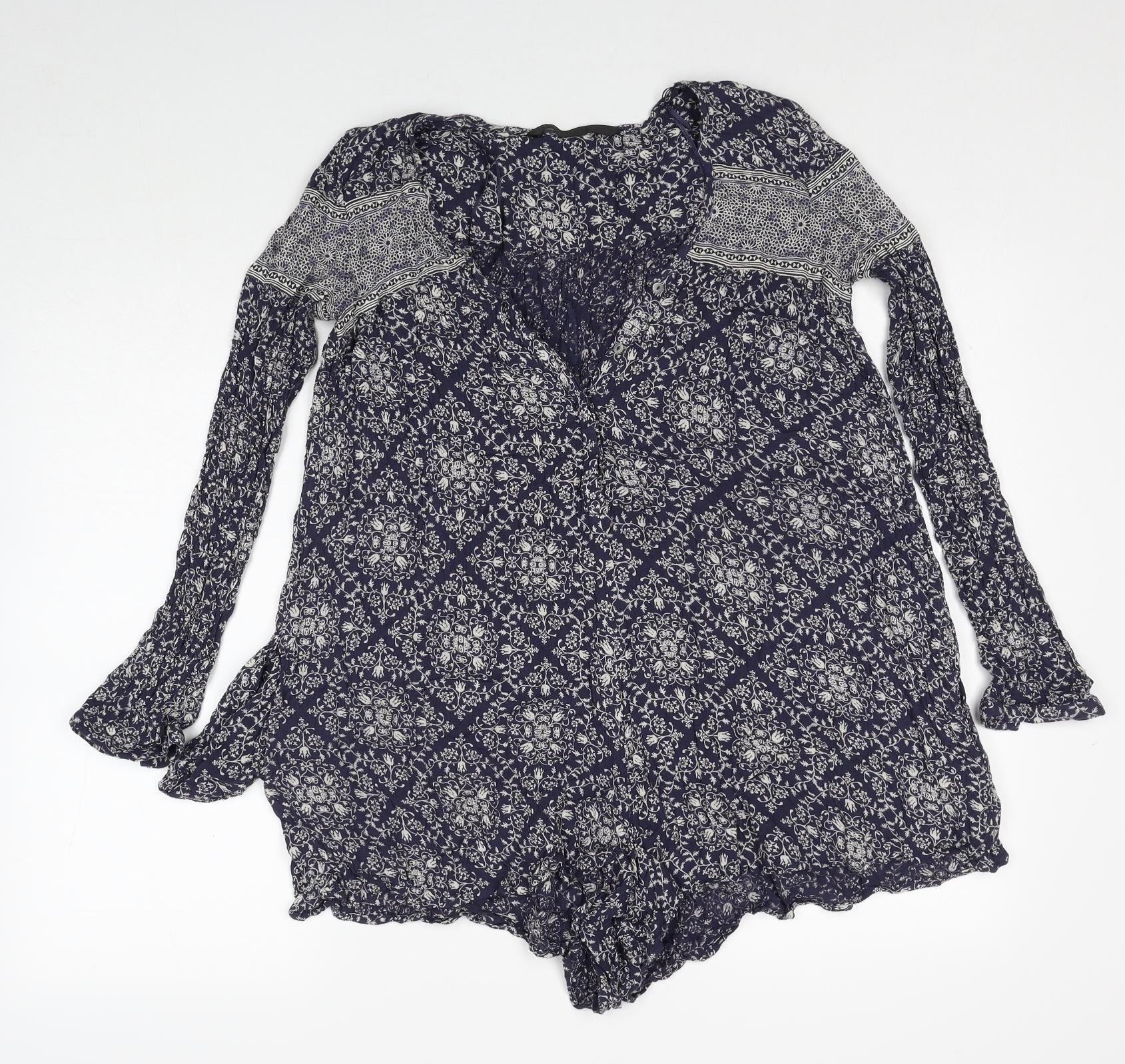 Zara Womens Blue Geometric Viscose Playsuit One-Piece Size XS Pullover
