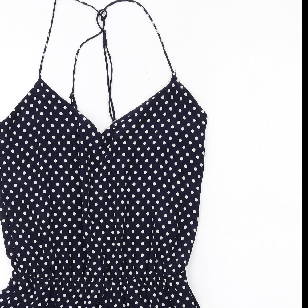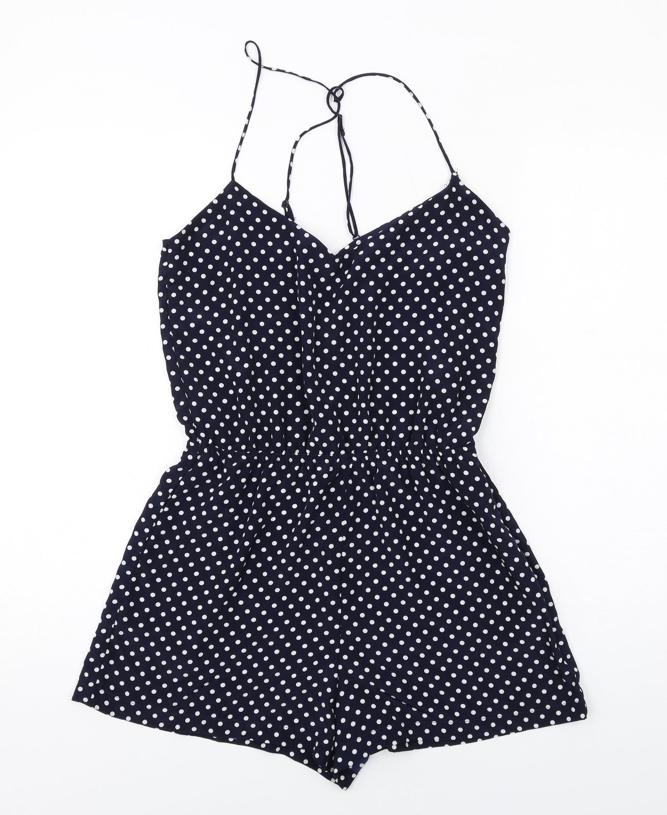Zara Womens Blue Polka Dot Polyester Playsuit One-Piece Size M Zip