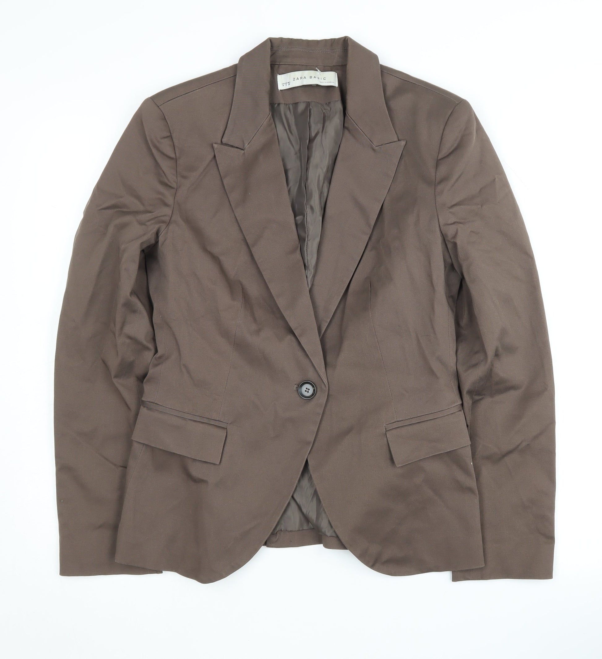 Zara Womens Brown Blazer UK 12 Regular Fit Lined