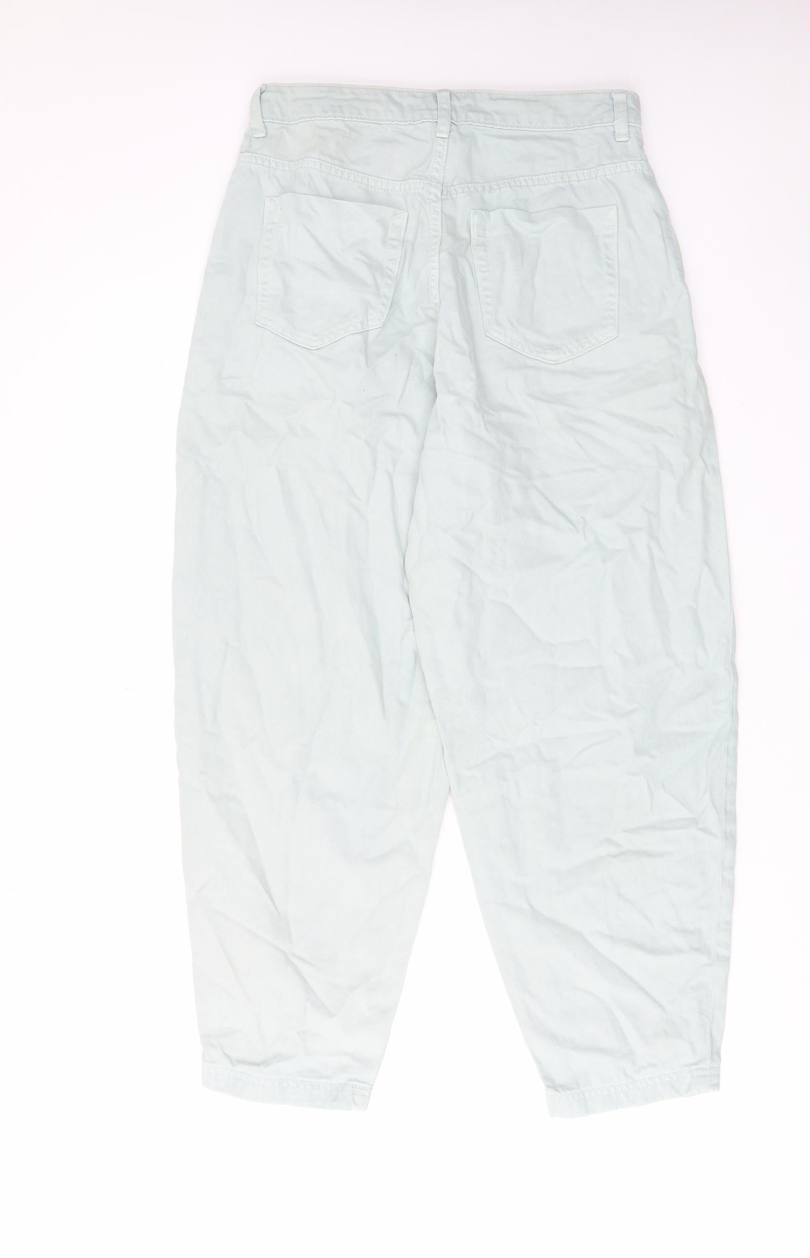 Zara Womens Green Cotton Mom Jeans Size 10 L26 in Regular Zip - Pockets, Belt Loops, Pleated