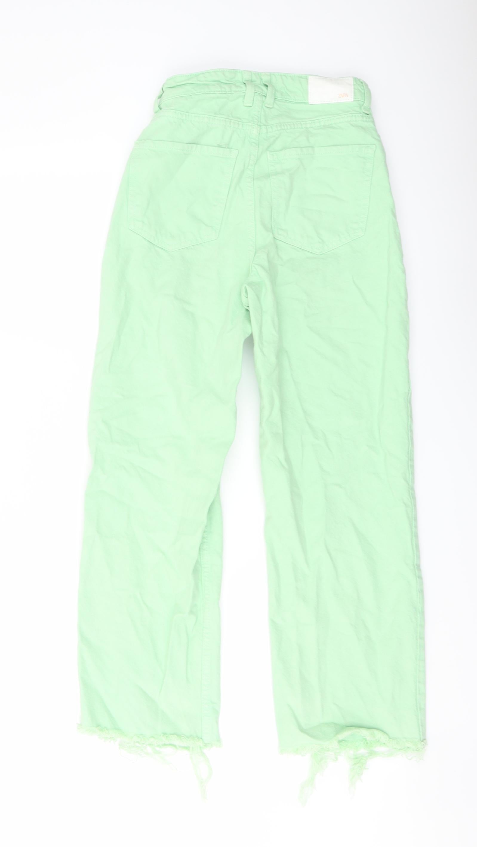 Zara Womens Green Cotton Straight Jeans Size 4 L25 in Regular Button
