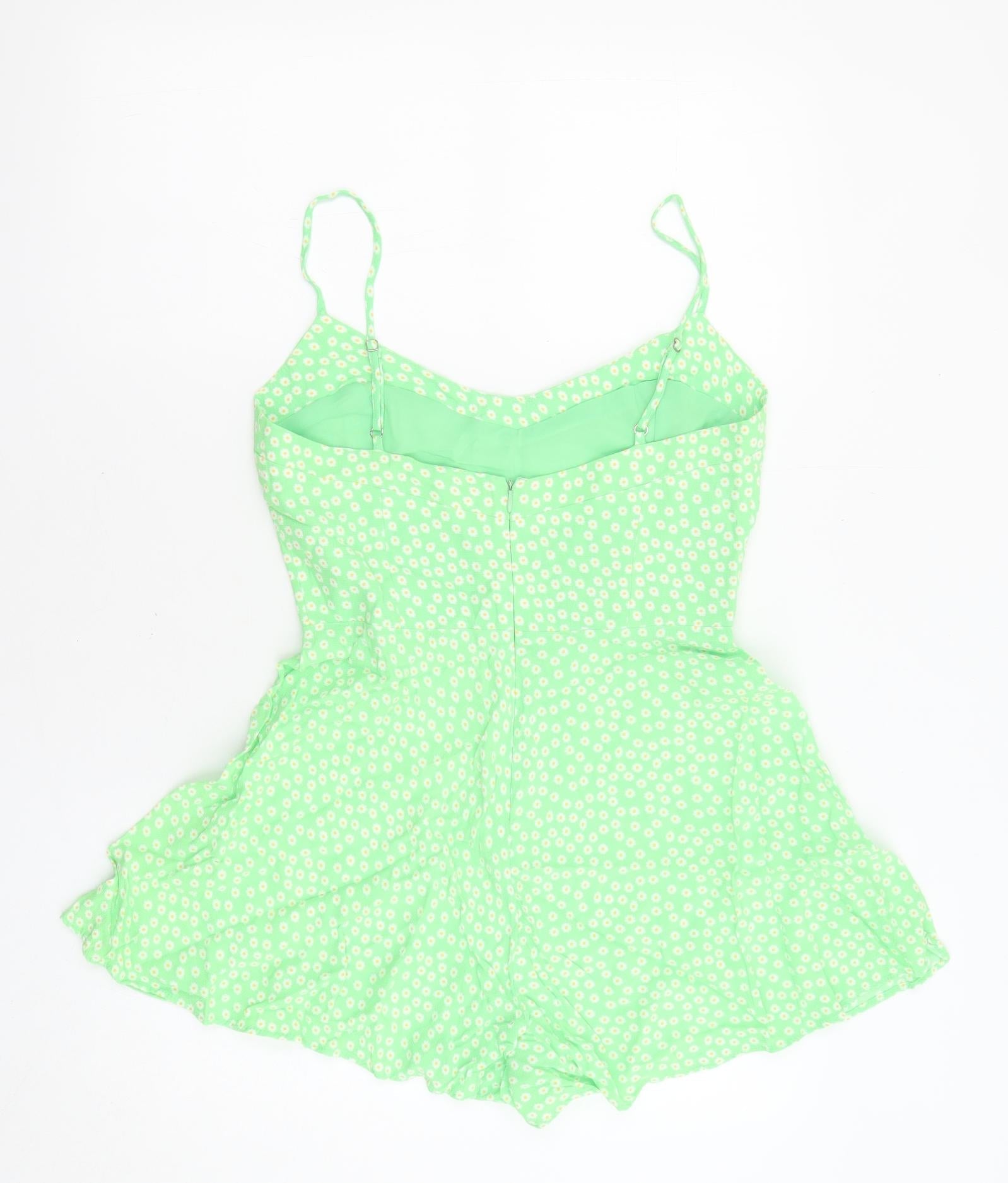 Zara Womens Green Floral Polyester Playsuit One-Piece Size S L24 in Zip - Inside Leg 2''