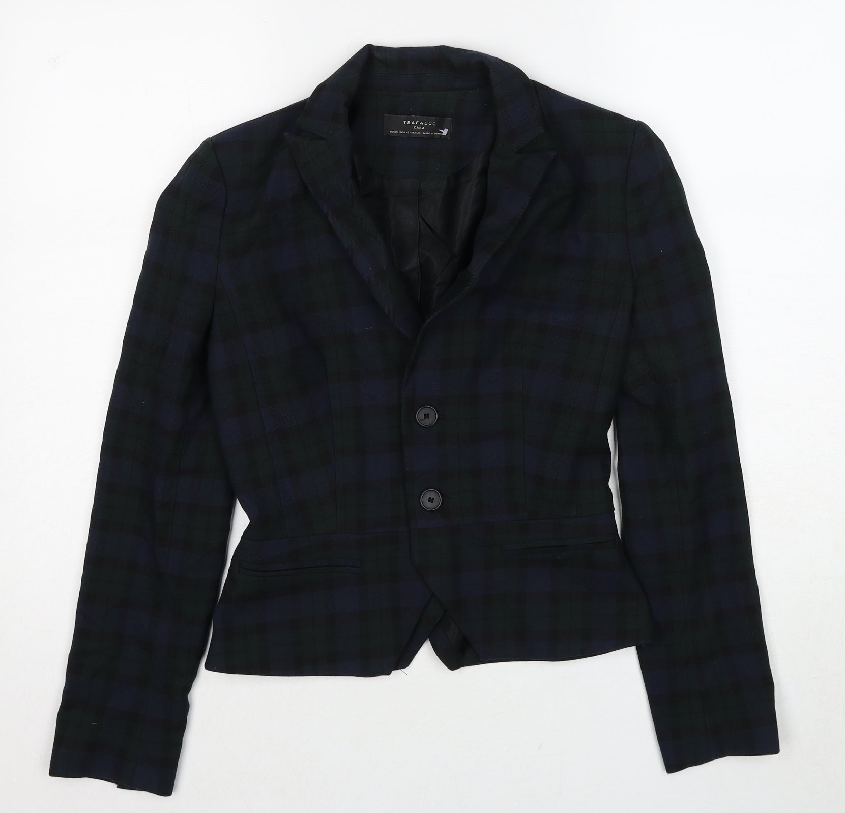 Zara Womens Green Plaid Polyacrylate Fibre Jacket Blazer Size XS