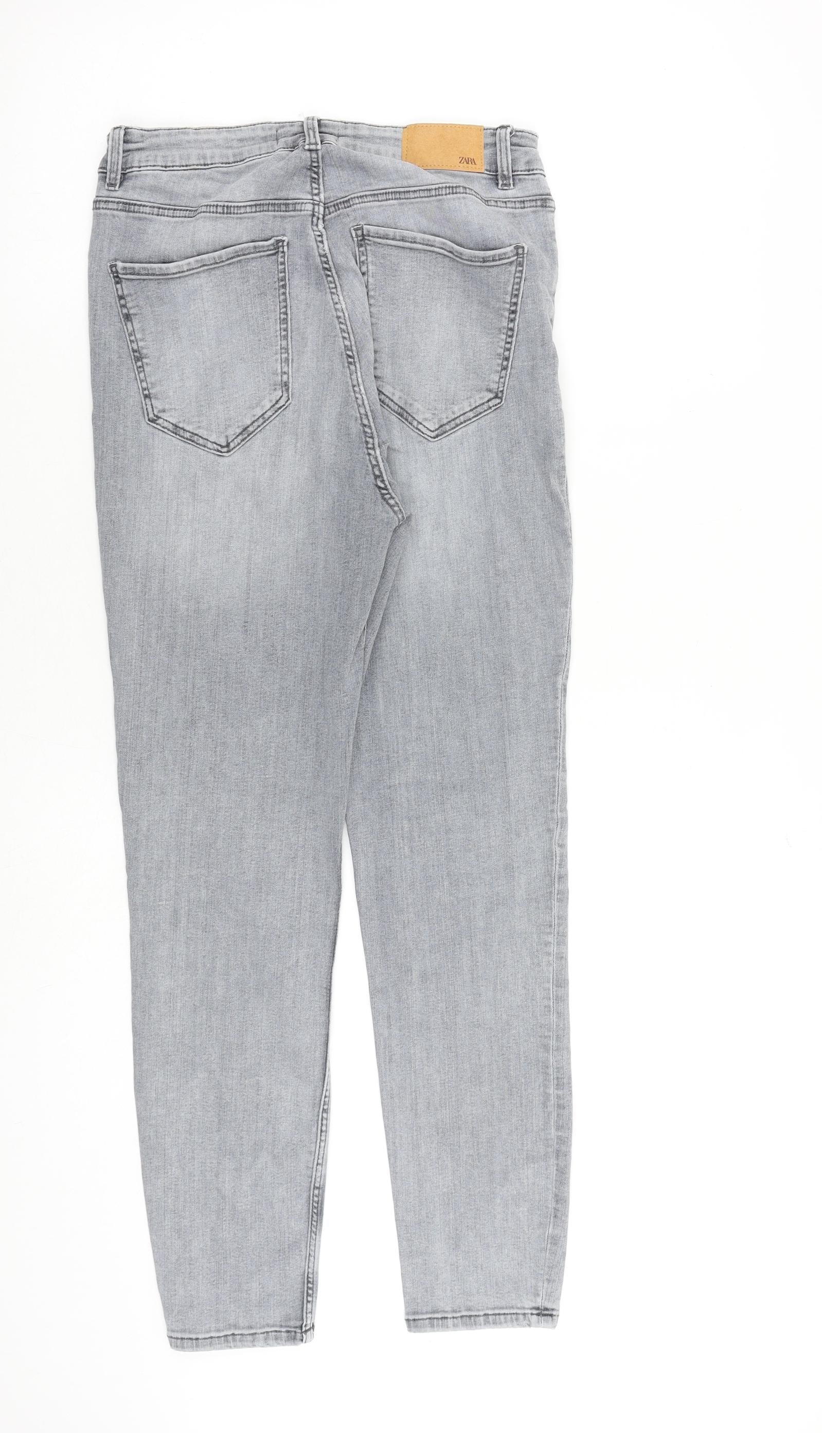 Zara Womens Grey Cotton Skinny Jeans Size 14 L27 in Slim Zip
