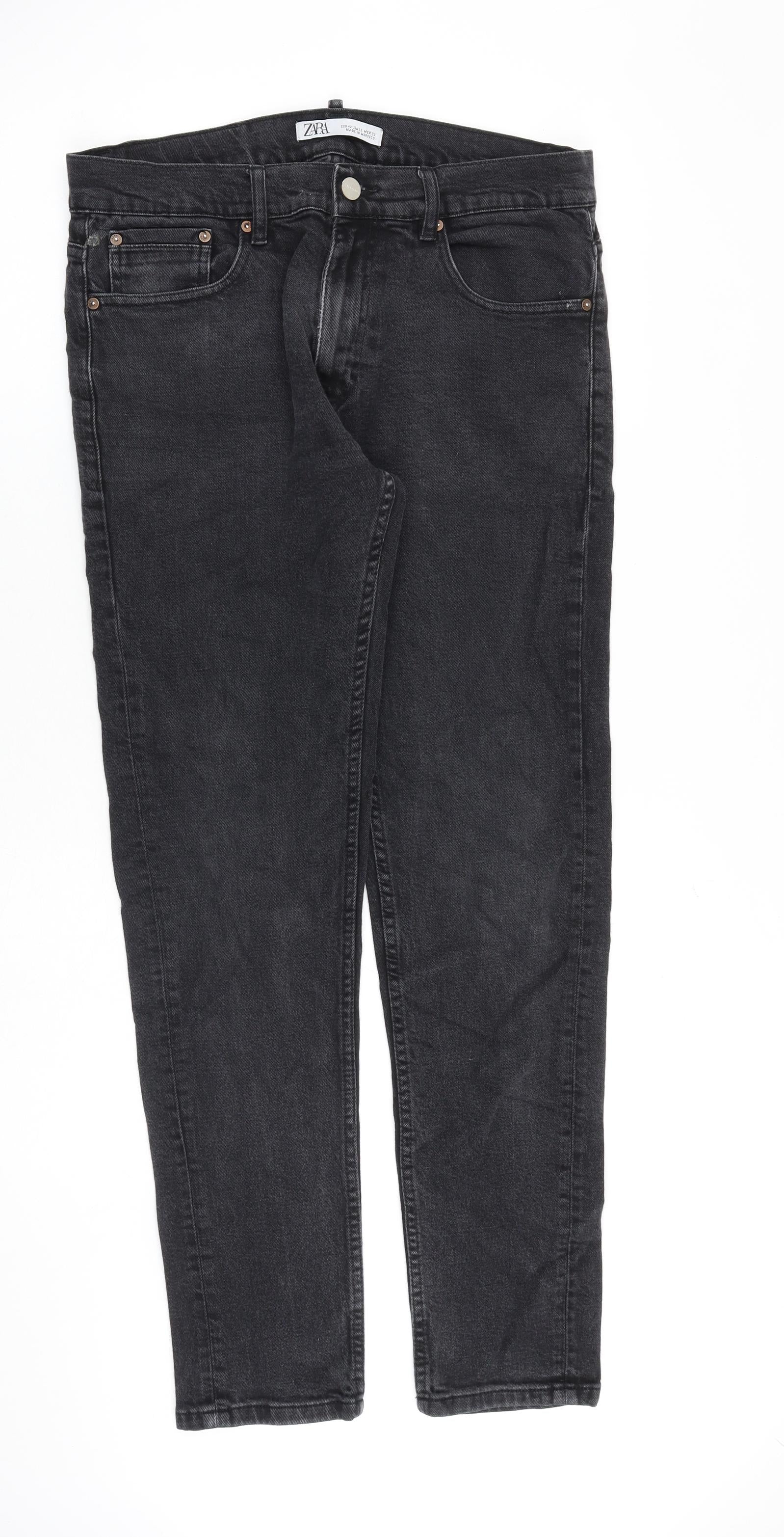 Zara Womens Grey Cotton Tapered Jeans Size 34 in L31 in Regular Zip