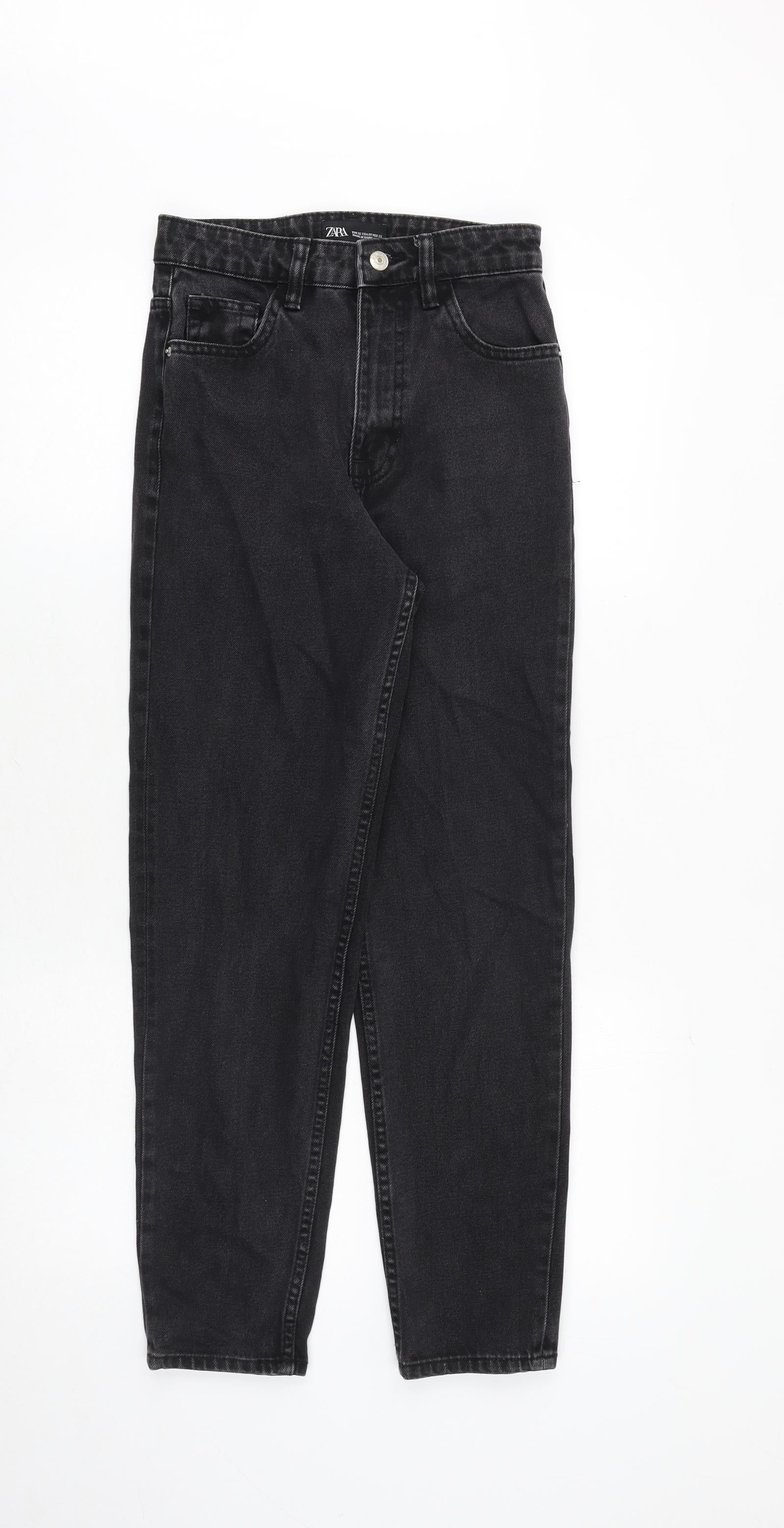 Zara Womens Grey Cotton Tapered Jeans Size 4 Regular Zip