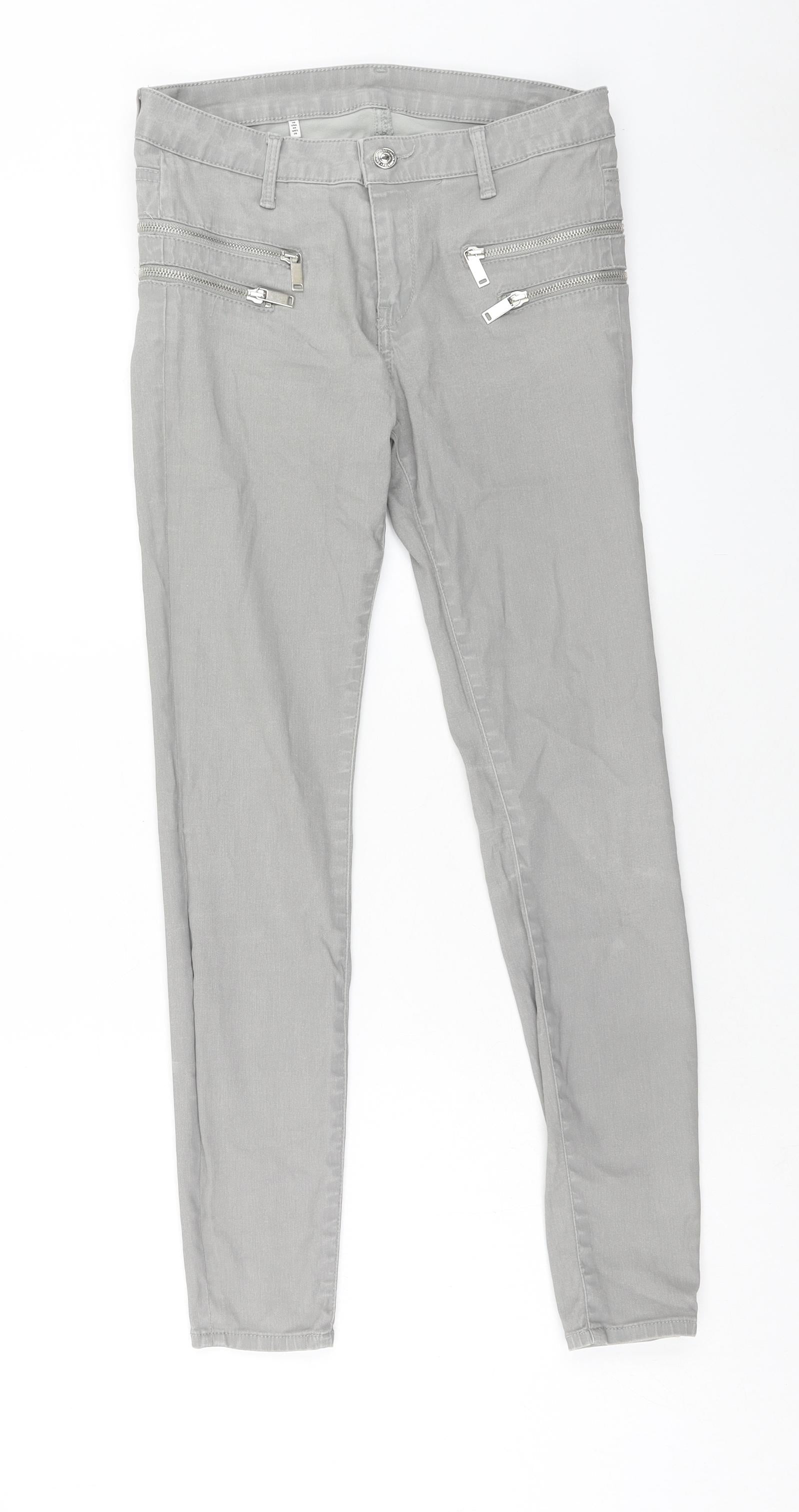Zara Womens Grey Polyester Skinny Jeans Size 8 Regular Button