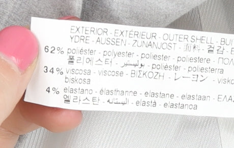 - Material Breakdown: 62% Polyester 34% Viscose 4% Elastane