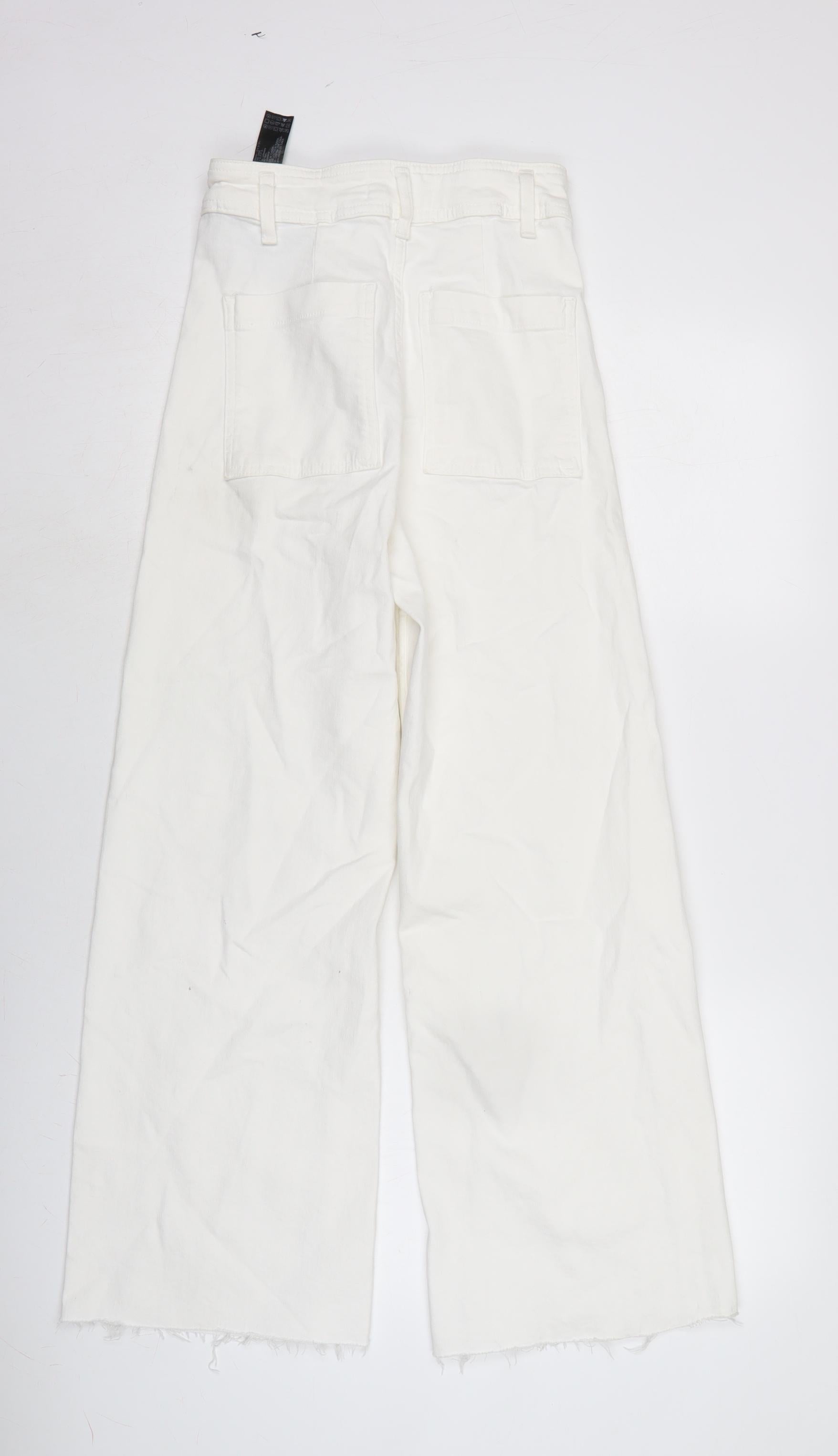 Zara Womens Ivory Cotton Blend Wide-Leg Jeans Size 6 L28.5 in Regular Zip