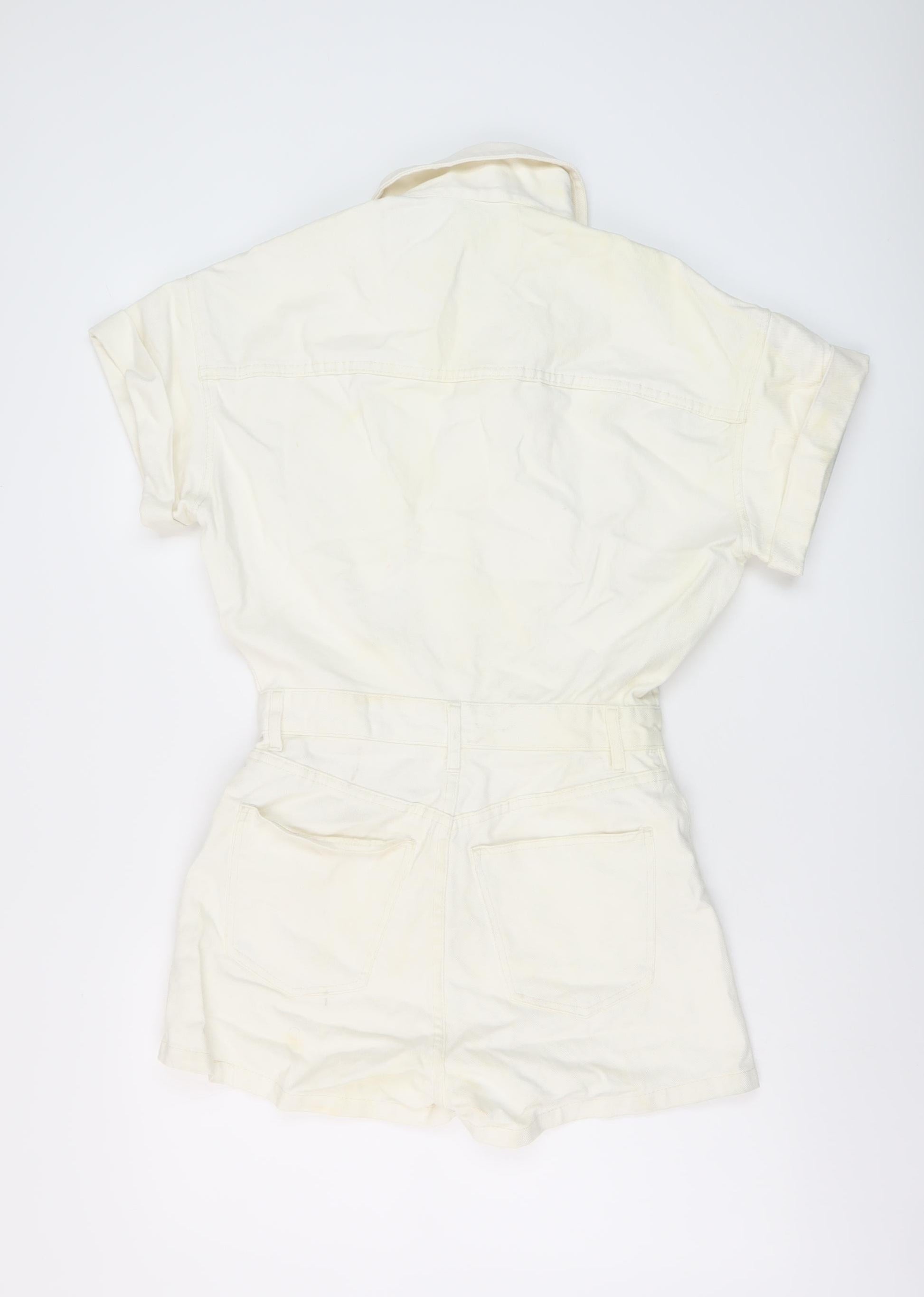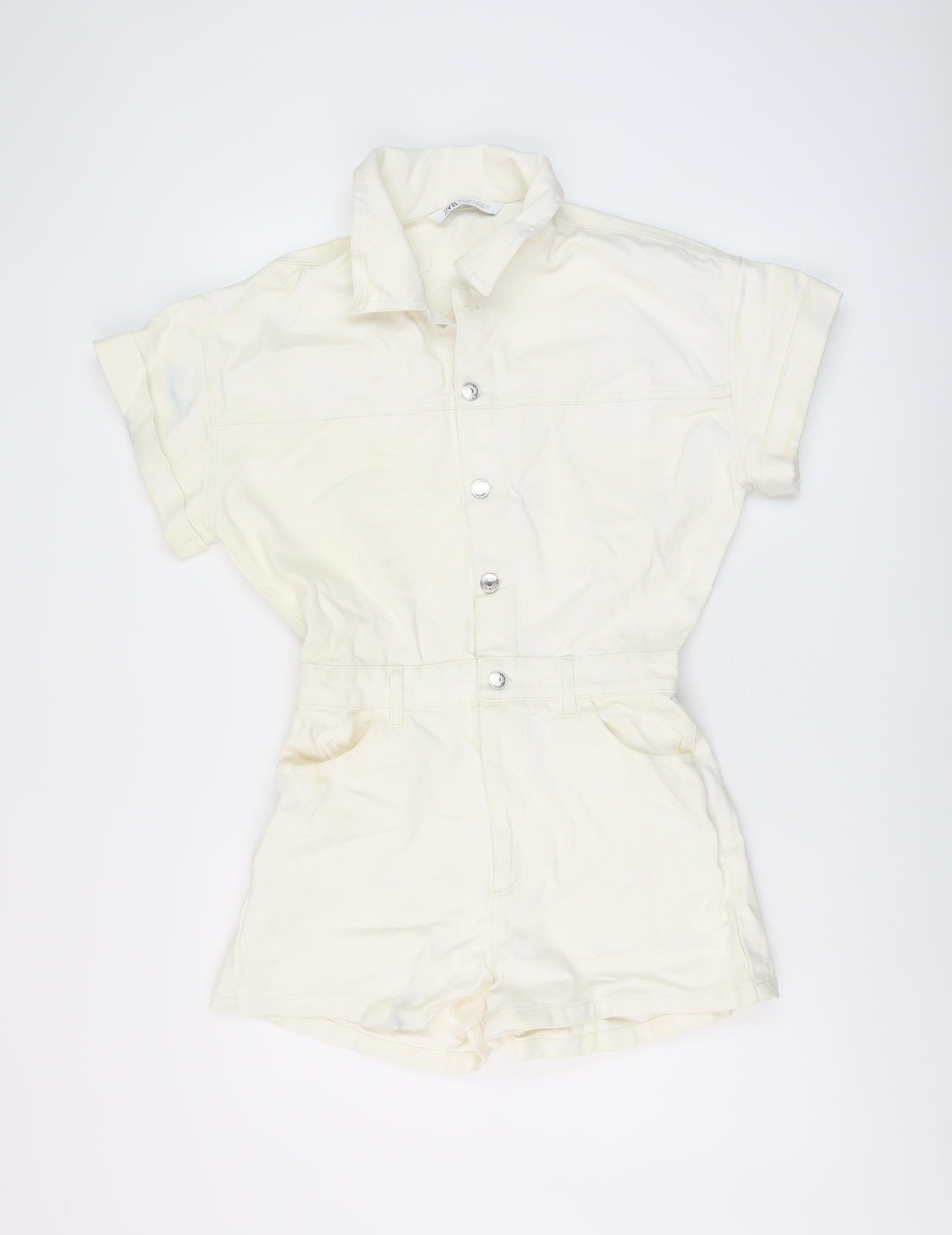Zara Womens Ivory Cotton Playsuit One-Piece Size S Button